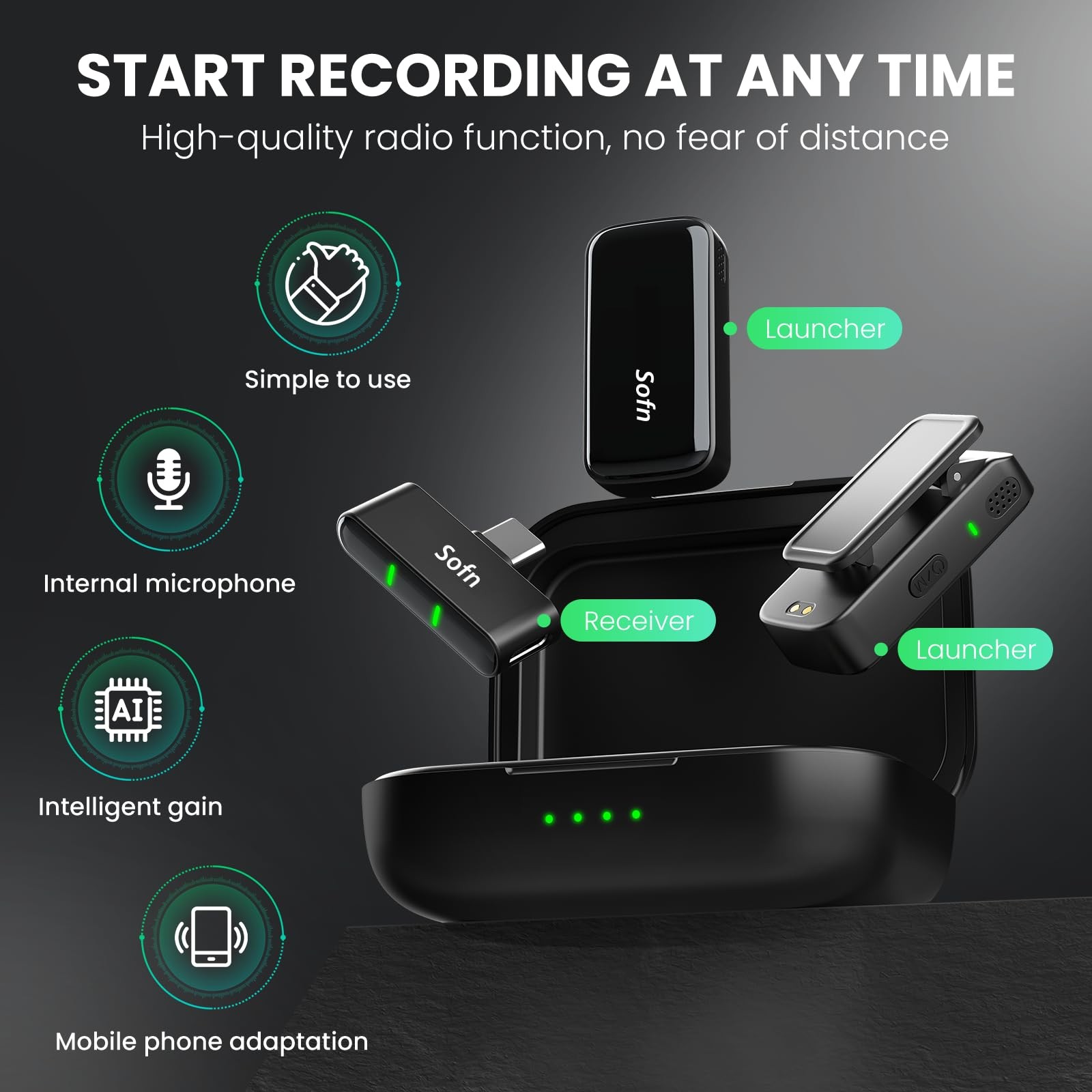 Wireless Lavalier Microphone for iPhone Android,Mini Mic with Charging Case,L...