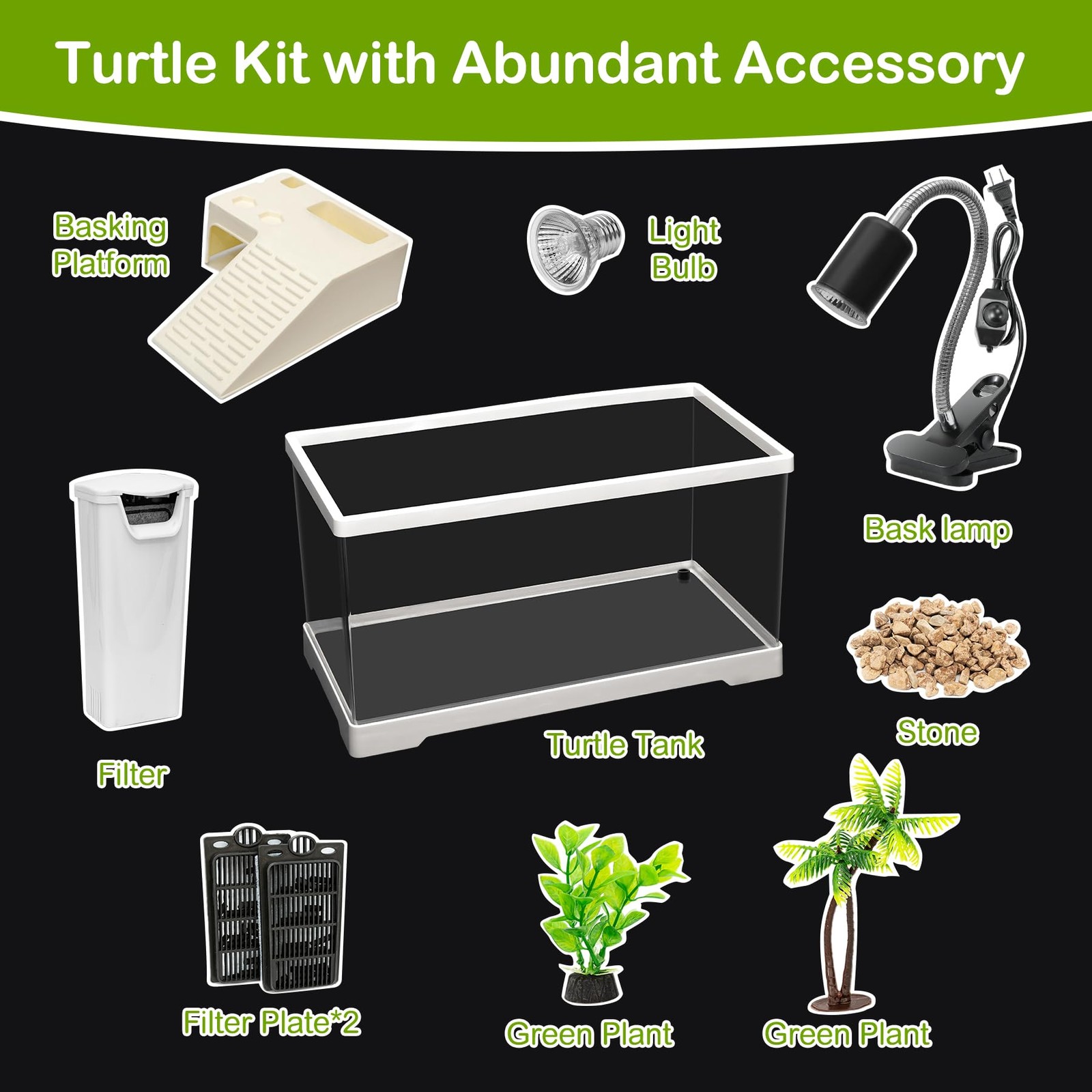Turtle Tank Kit All in One Habitat Aquarium Silent Filter UVB Lamp Basking