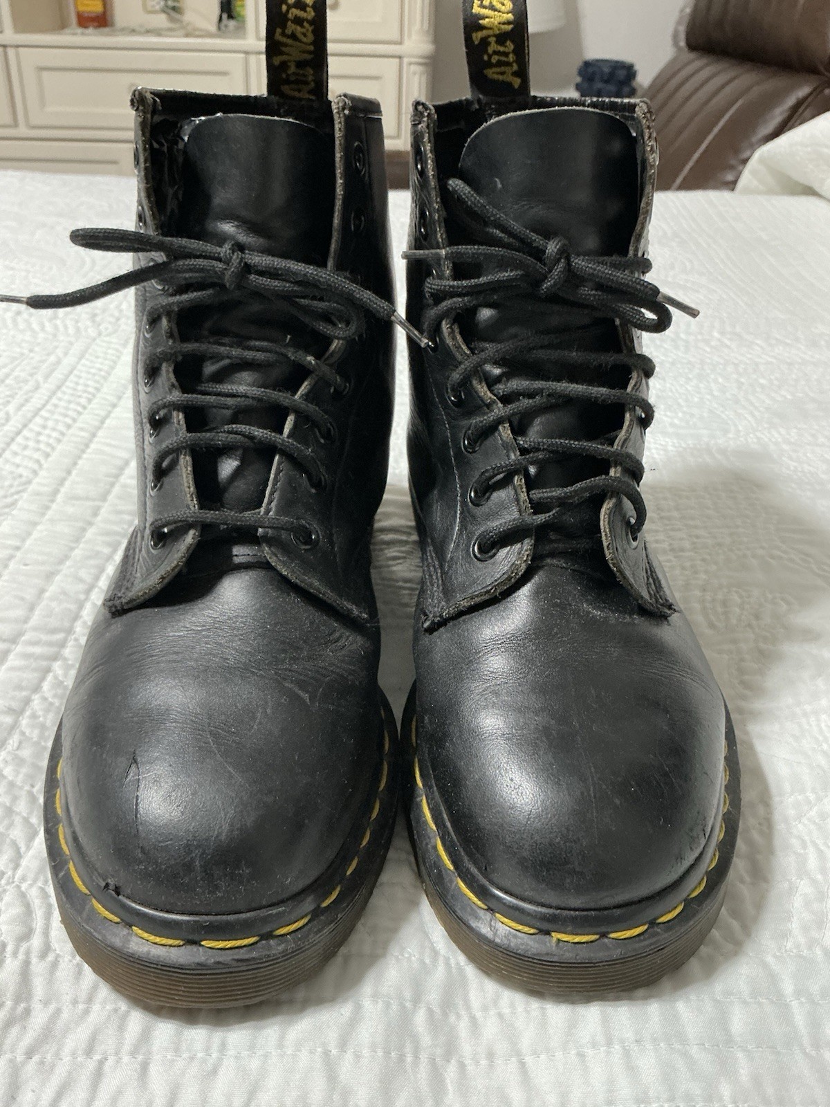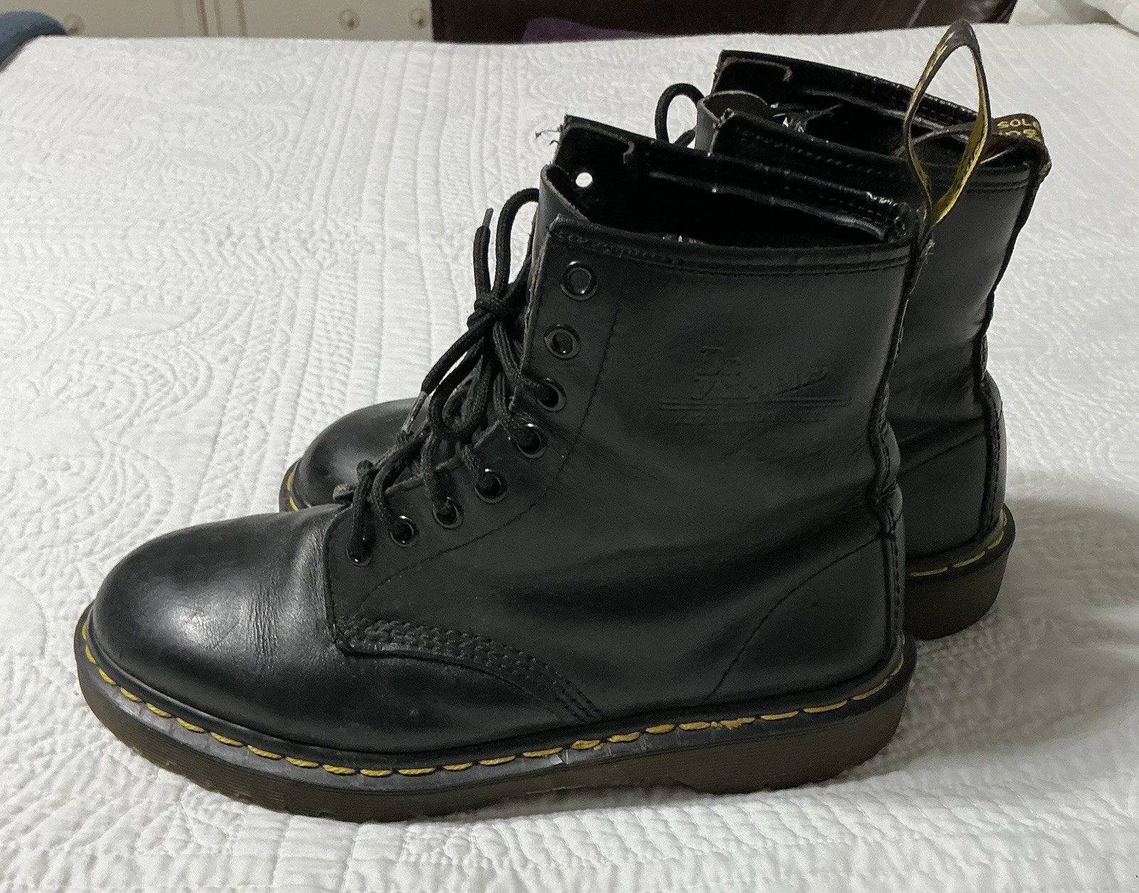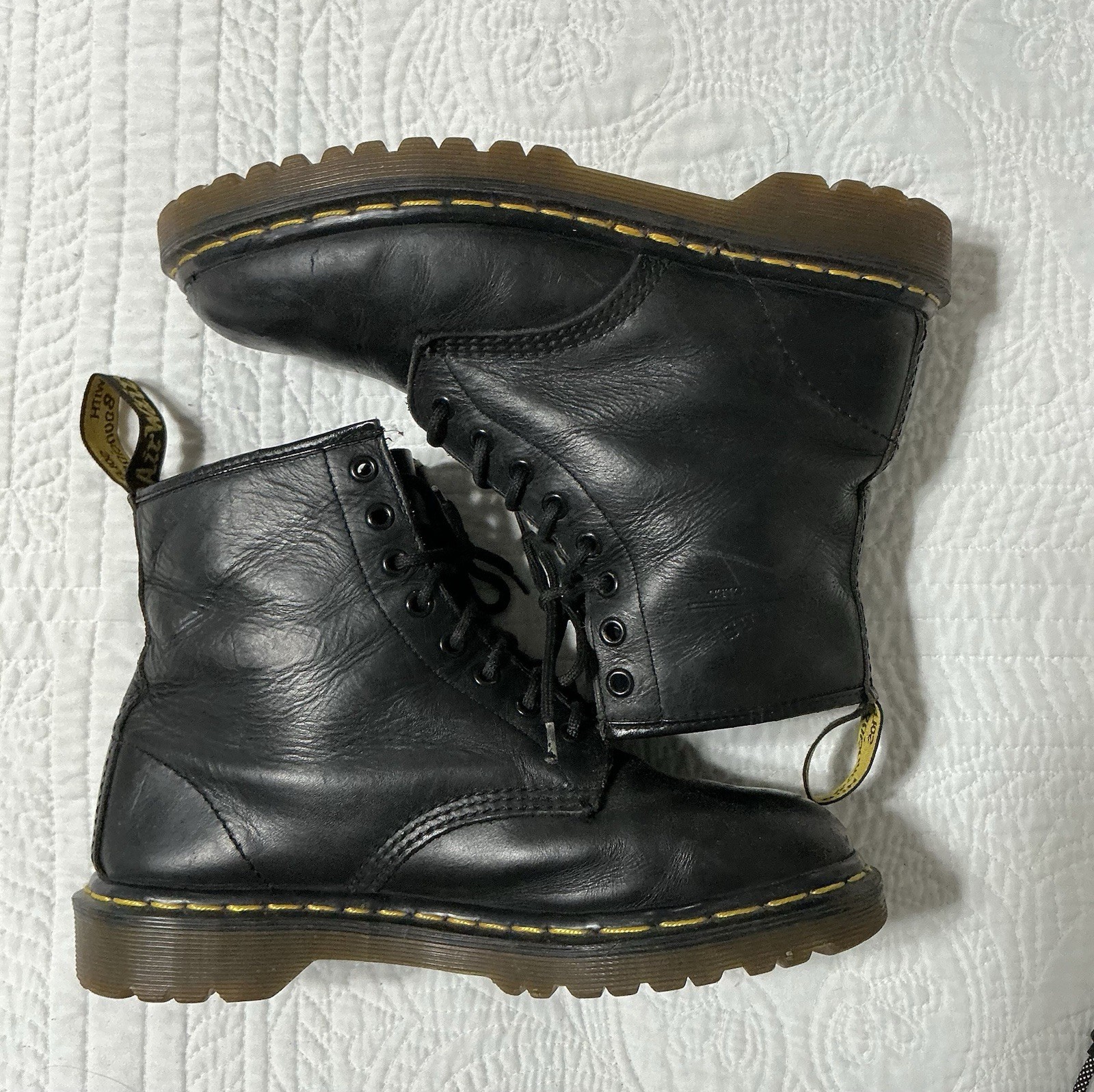 как выглядит Dr. Martens 1460 Made In England Black 8 Eye Combat Boots AirWair UK Size 7 UK фото