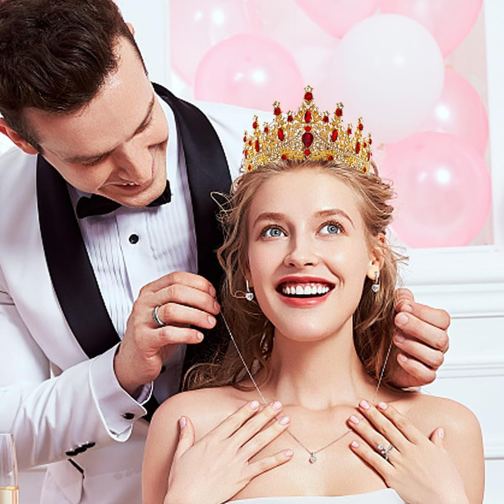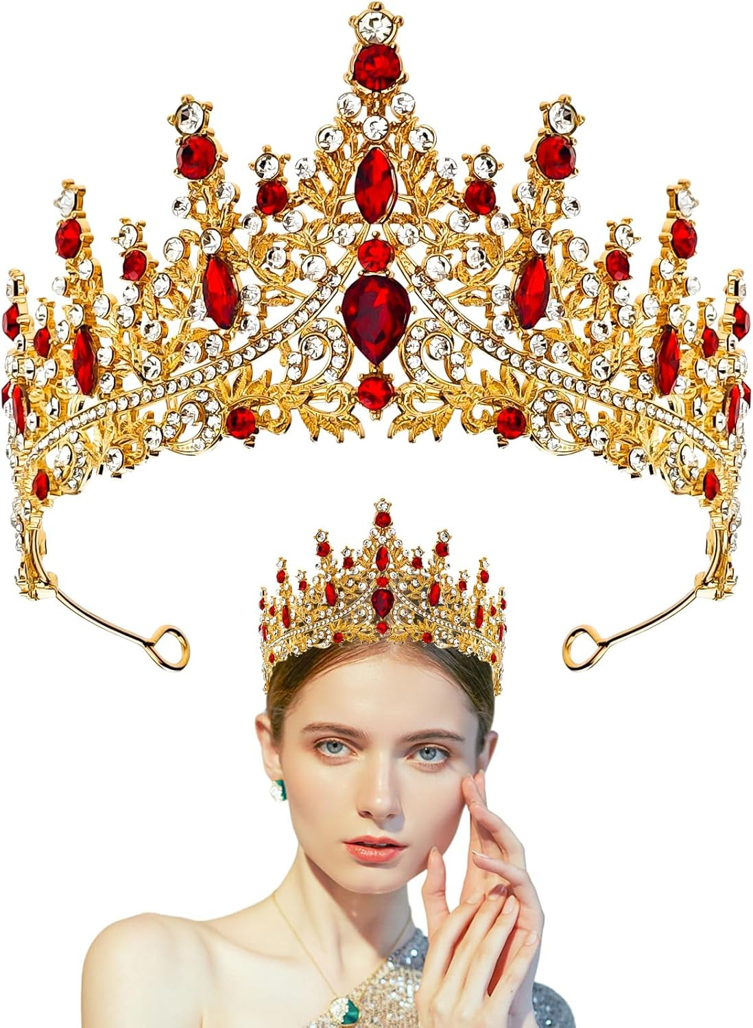 как выглядит Red Queen Crown Tiara for Women Rhinestone Wedding Headband Crystal Heart Headpi фото