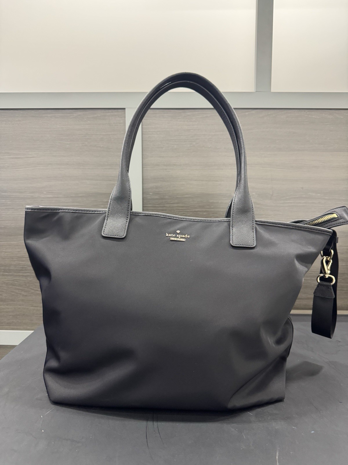 как выглядит Kate Spade Diaper / Tote Bag Black Nylon Material. Great Condition фото