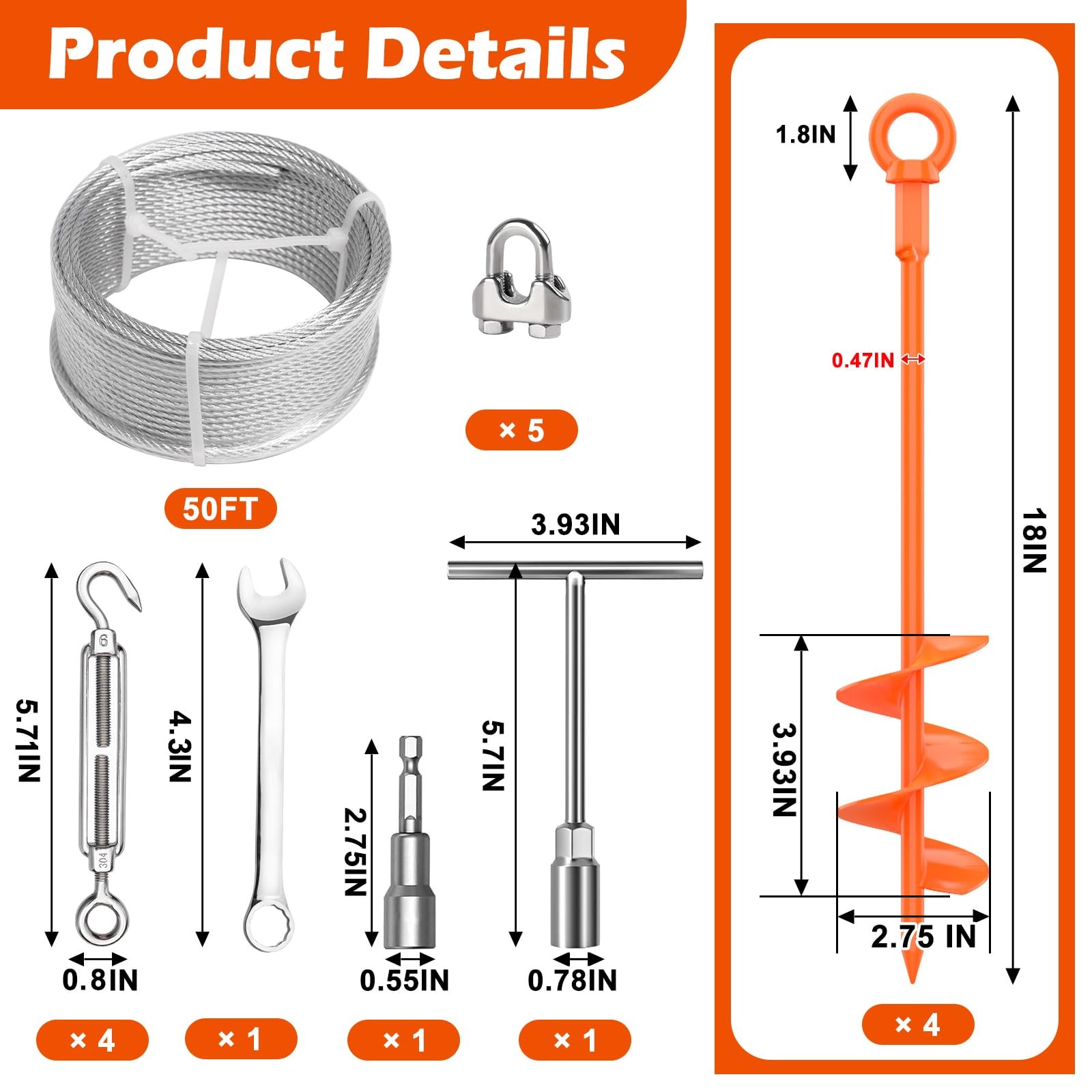 4 Pcs 18 Fully Welded Ground Anchors Shed Anchors Kit with 1/8 Galvanized C...