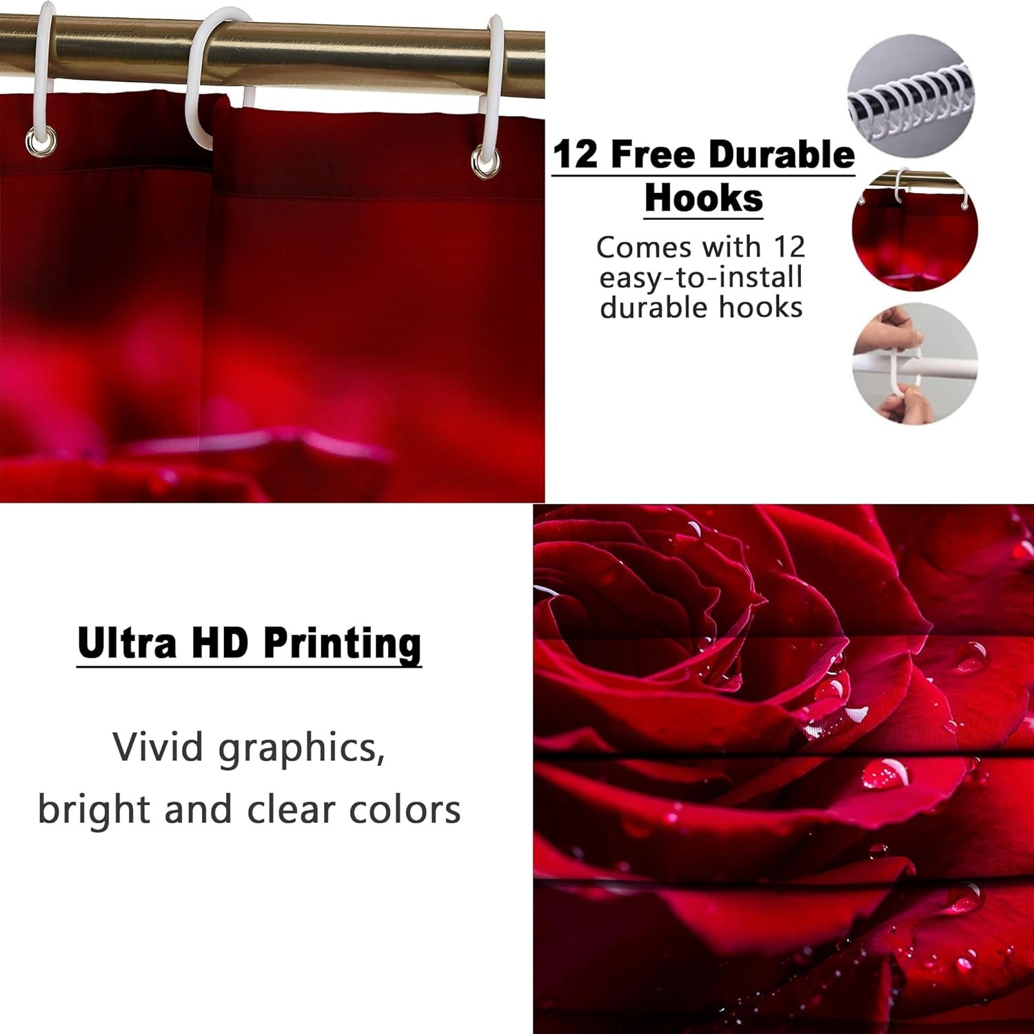4 Pcs Shower Curtain Set, Red Rose Bathroom Set,Romantic Shower Curtain Sets ...