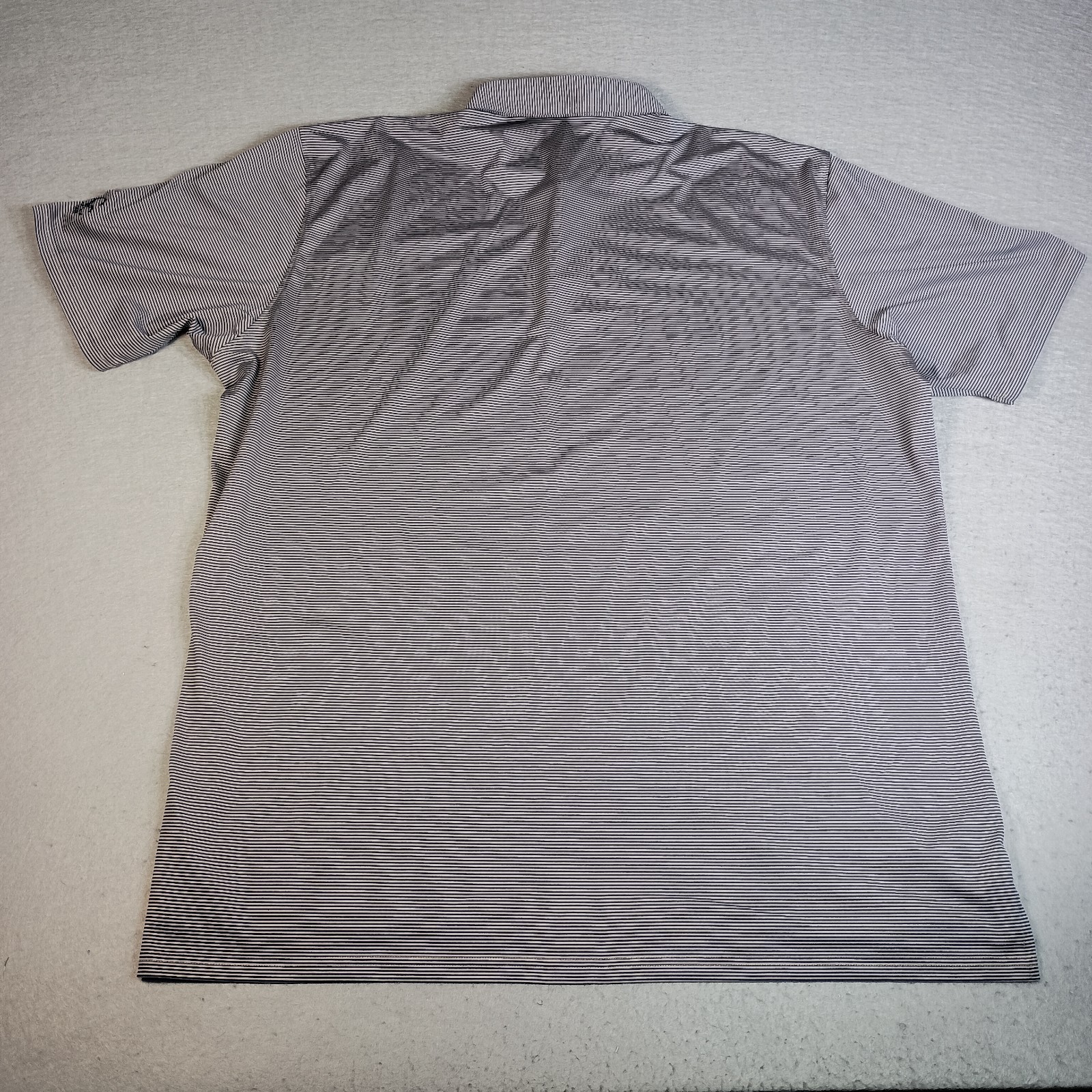 как выглядит Holderness Bourne Mens XXL Gray/Blue Striped Golf Embroidered Performance Polo фото
