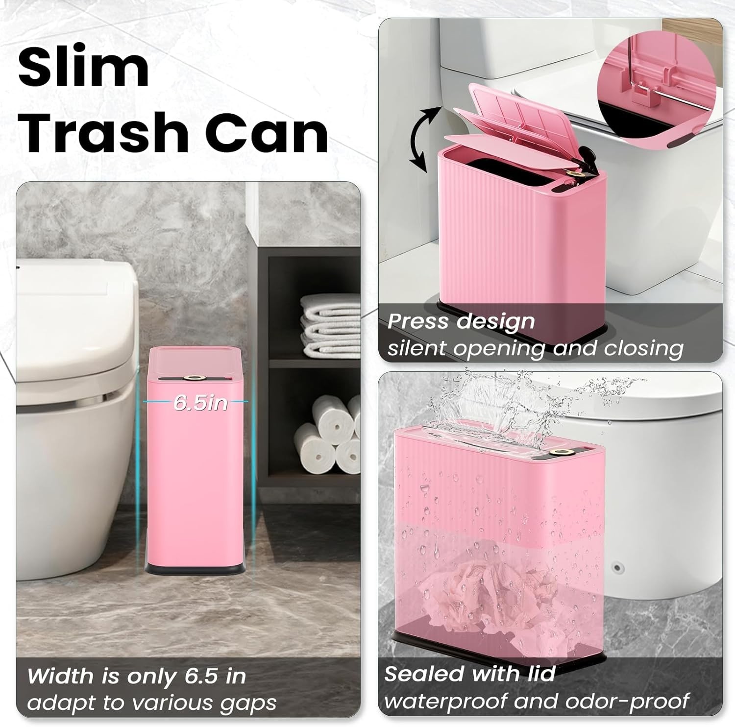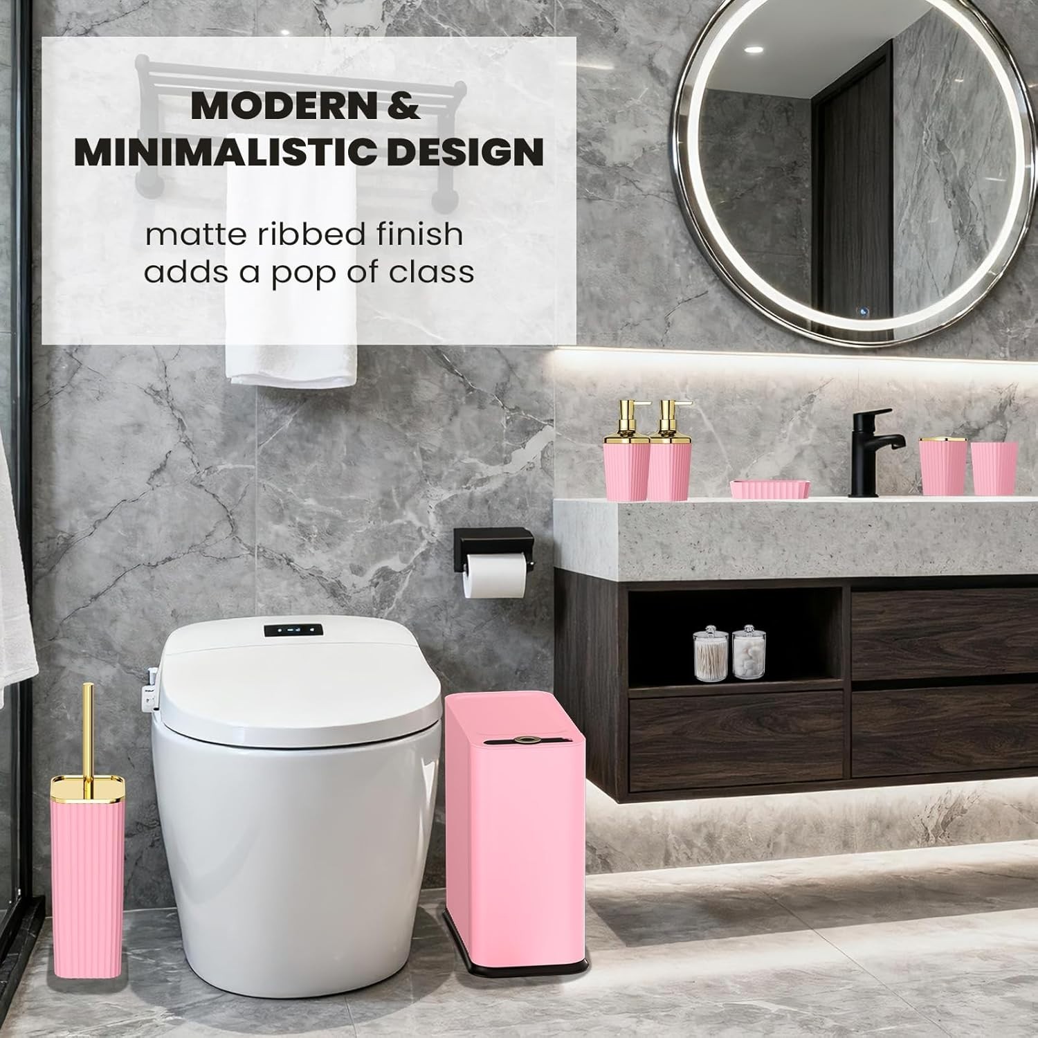 9-Piece Bathroom Set with Slim Trash Can Press Top Lid, Modern Bathroom Acces...