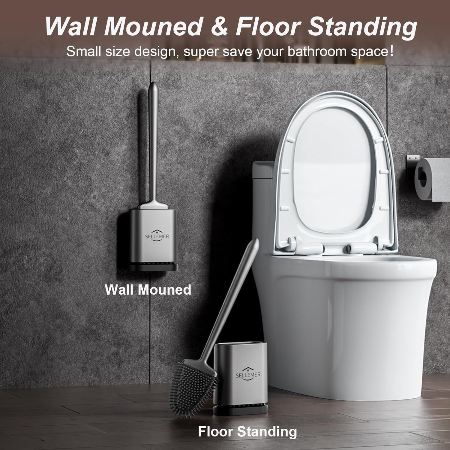 Toilet Brush and Holder Set - Flexible Toilet Bowl Brush Head with Silicone B...