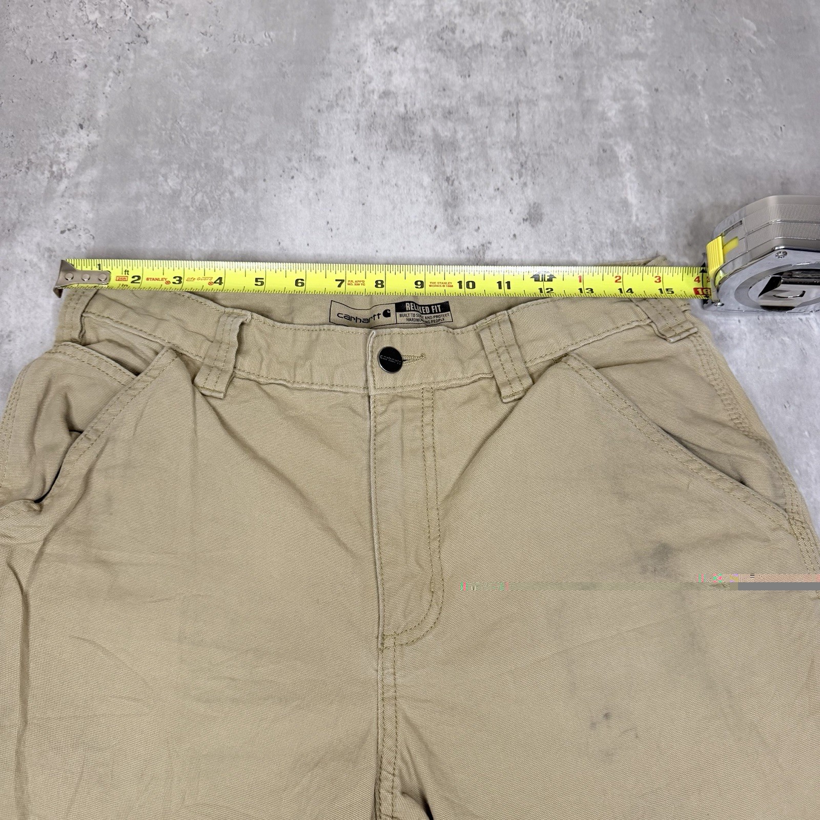 как выглядит Carhartt Relaxed Fit Carpenter Work Pants Mens 32x32 Tan Straight Leg Utility фото
