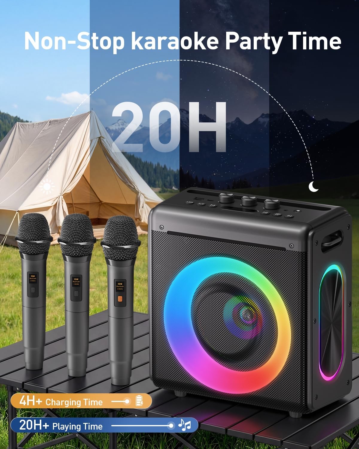 Karaoke Machine with 3 Wireless Rechargeable Microphones: Portable Bluetooth ...
