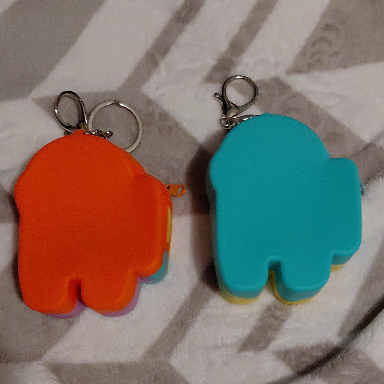 как выглядит Among Us Pop-It Sensory Toy Keychain Zipper Pouch Set Rainbow Pastel Colors фото