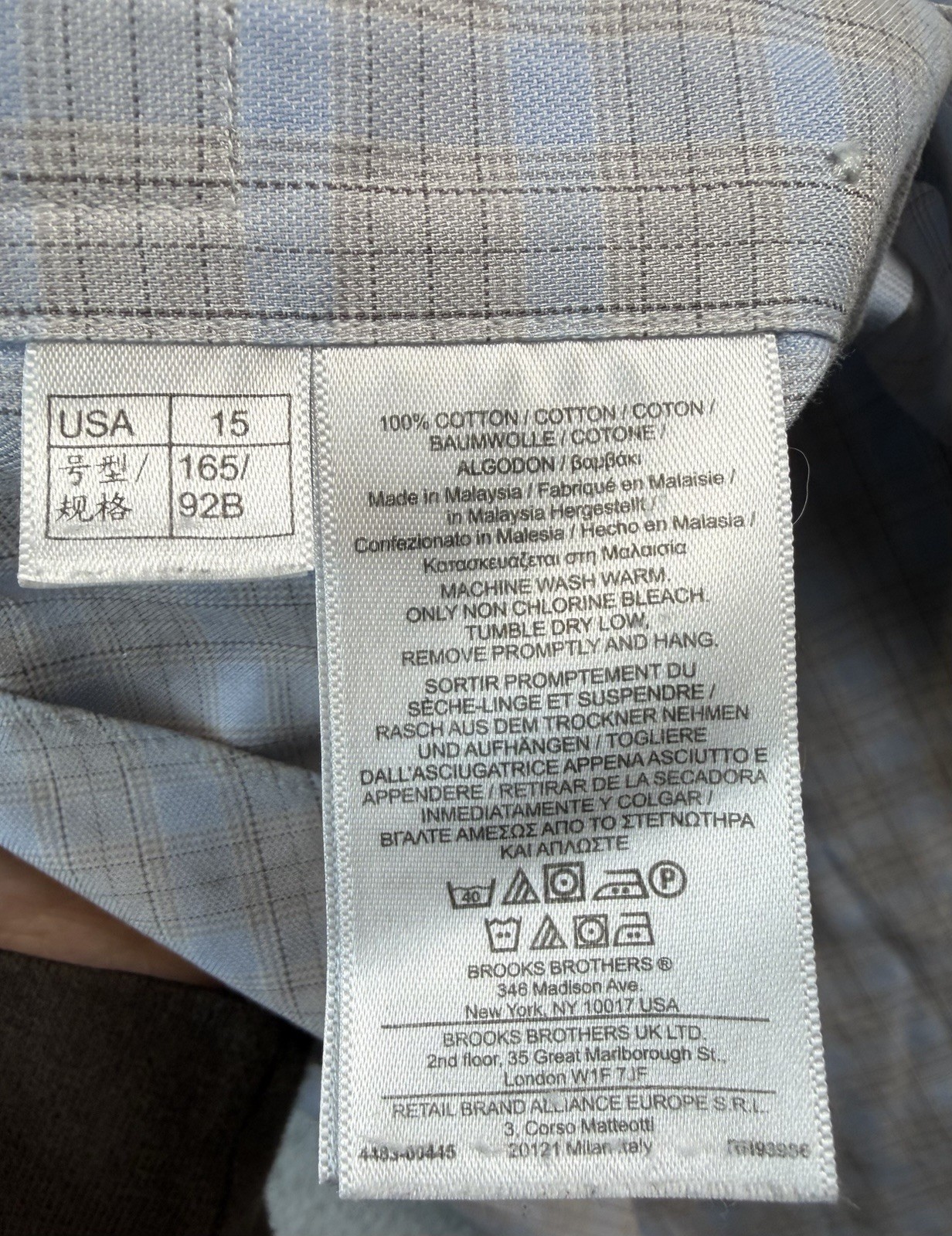 Brooks Brothers Dress Shirt Mens 15-4/5 Slim Fit Button Down Blue Check Non-Iron