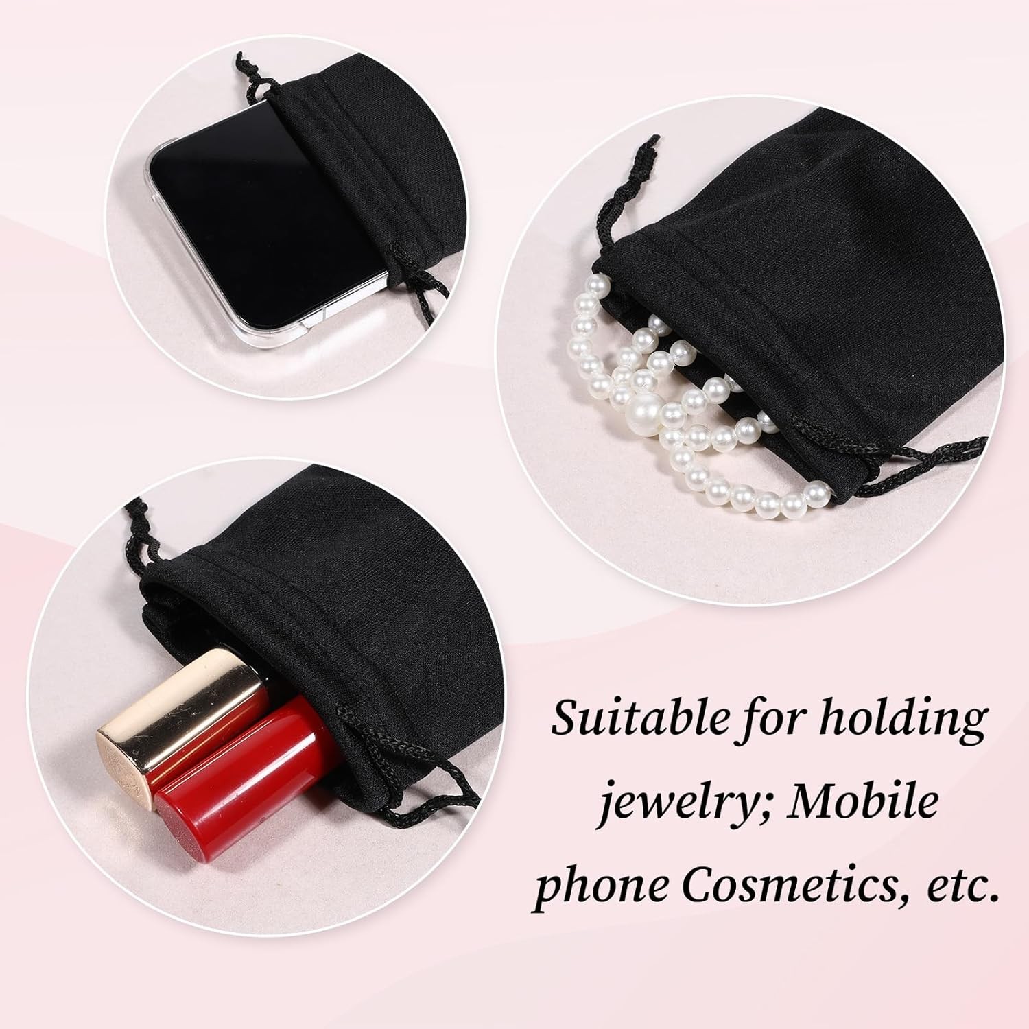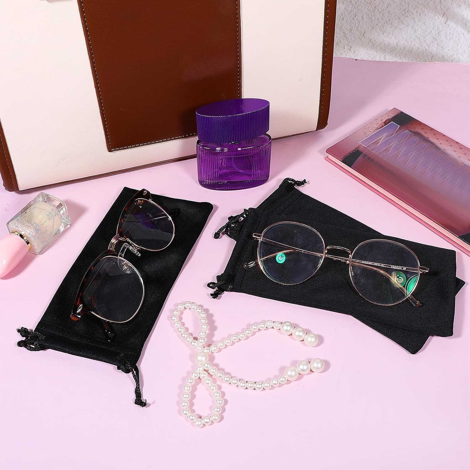 Microfiber Glasses Pouch Drawstring 10pc Black
