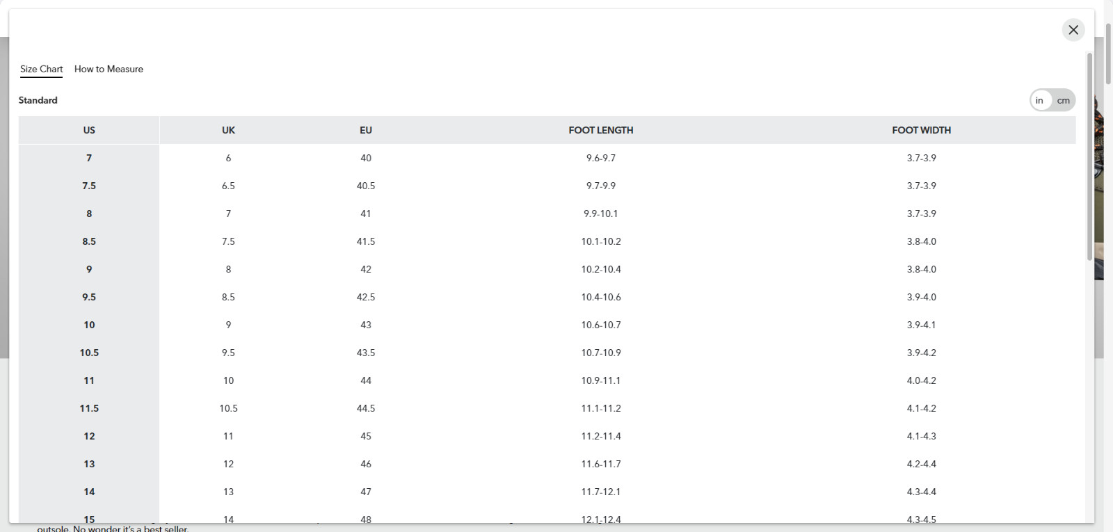 Shoe Width: Standard
