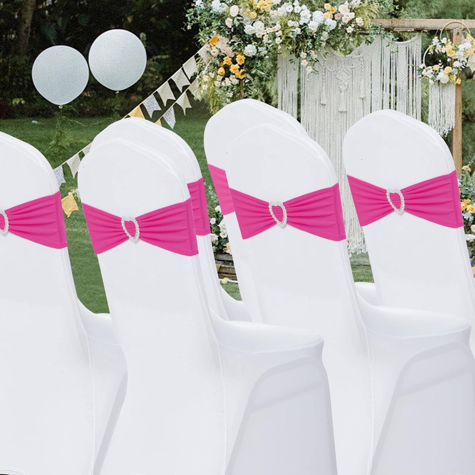 Pack of 30 Spandex Chair Sashes Bows Stretch Chair Cover Band with Buckle Sli...