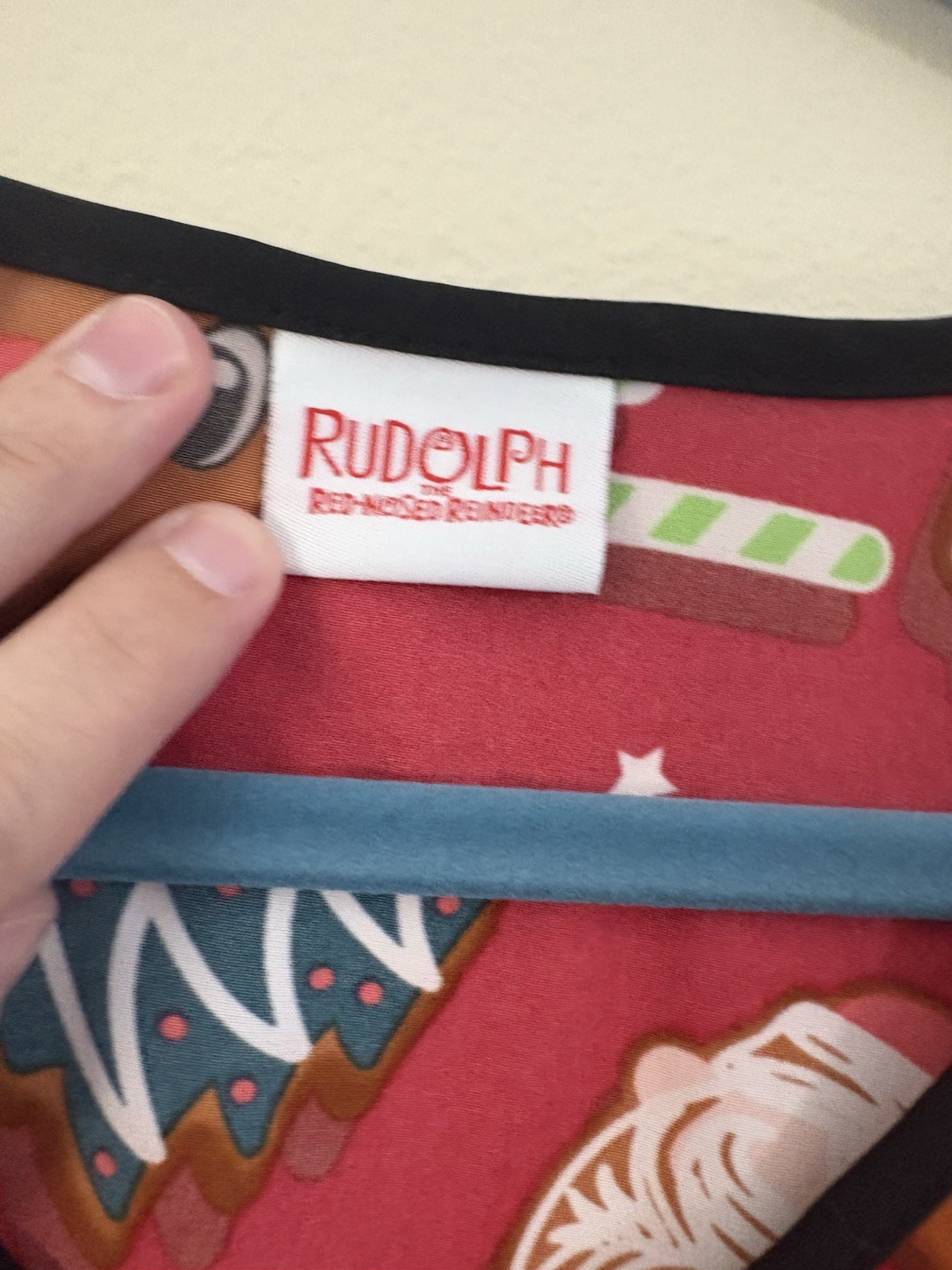 Rudolph the Red-Nosed Reindeer Santa Scrub V-Neck Top Women's 2xl Red pockets