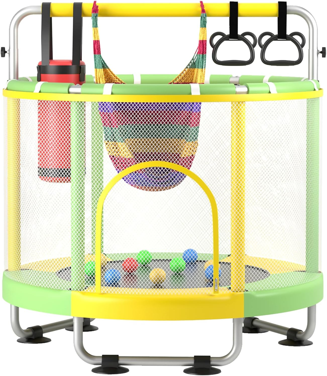 55 Trampoline for Kids with Enclosure, 440Lbs Capacity Indoor Outdoor Toddler