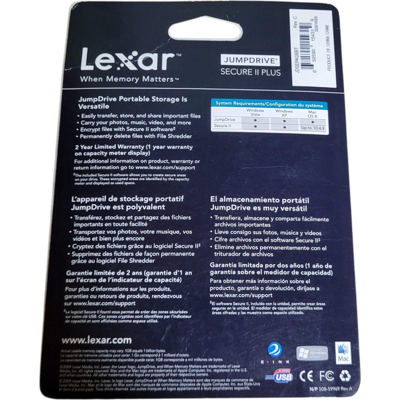 Lexar JumpDrive Secure II Plus 4GB USB Flash Drive Capacity Meter NEW Sealed NOS