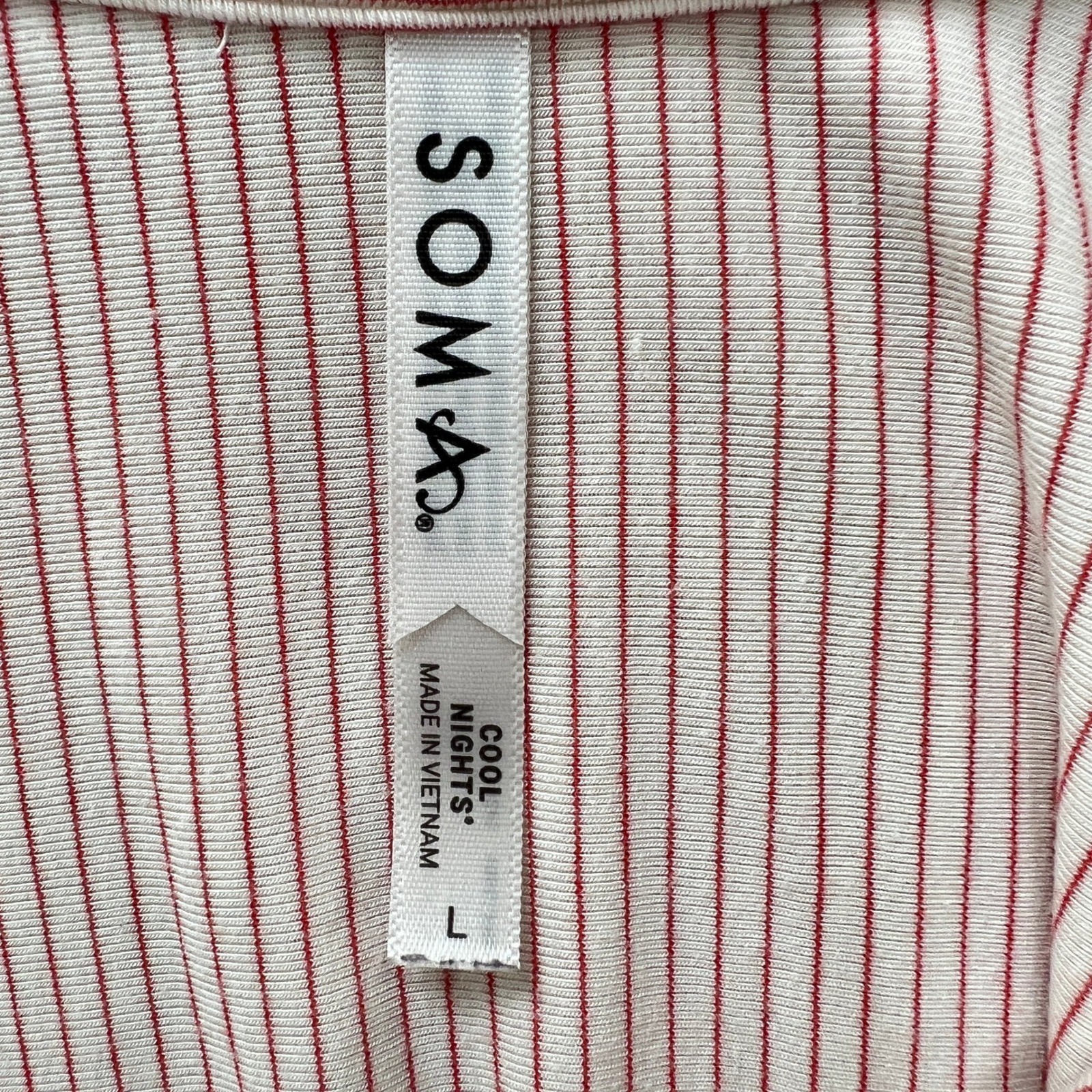 Soma Cool Nights Pajama Set Red White Pinstripe Button Down Pants L M Loungewear