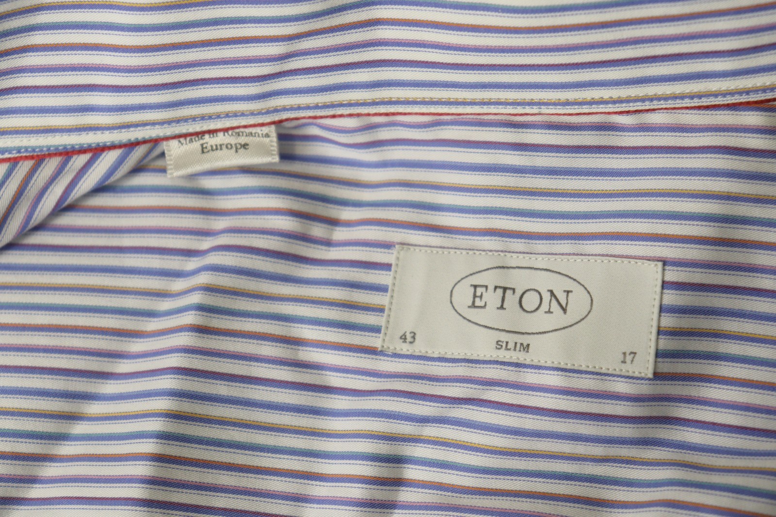 Eton Multi Striped Cotton Slim Fit Long Sleeve Button Down Dress Shirt Size 43