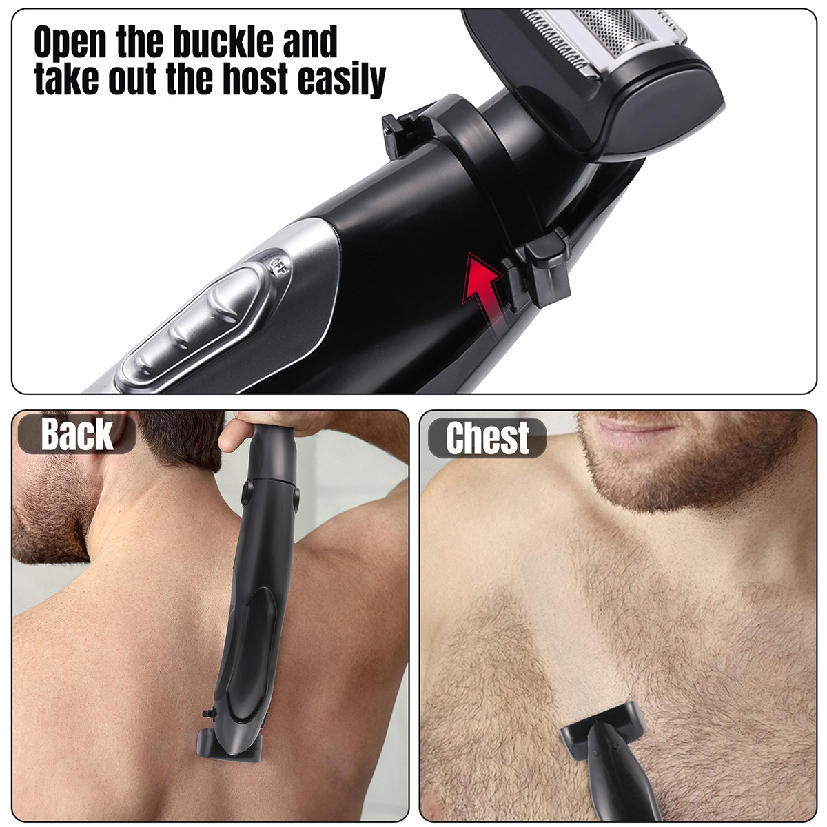 Men Electric Back Hair Shaver - Long Detachable Handle Painless Body Groomer