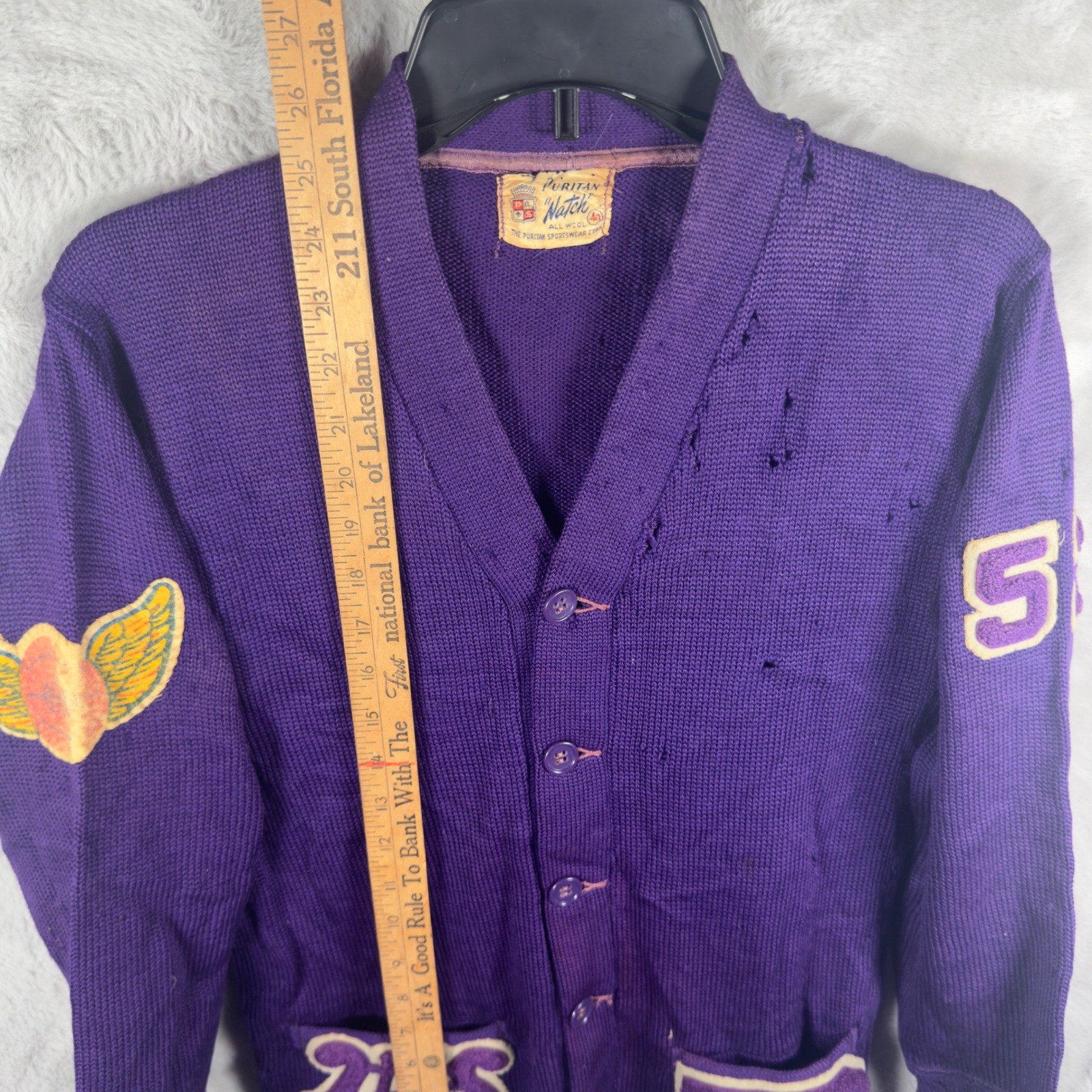 Vintage 1950s Puritan Natch Purple Wool Varsity Letterman Cardigan Sweater 53