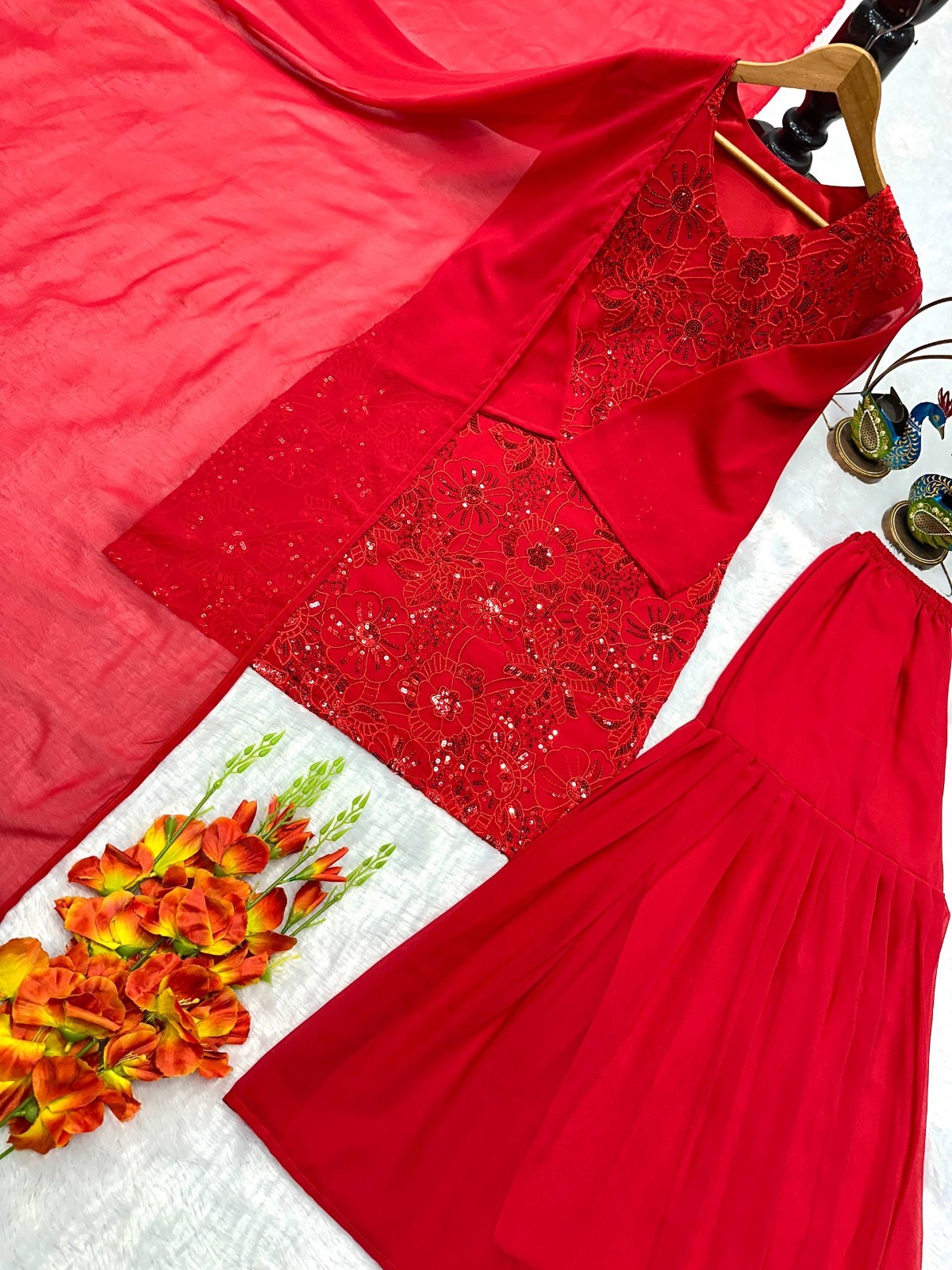 Bollywood Style Faux Georgette Kurta Palazzo With Dupatta For Party Wear