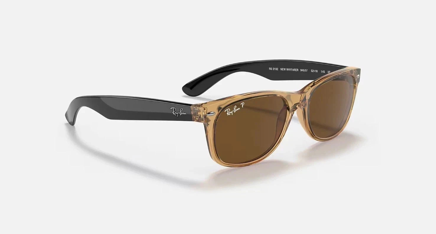 Ray-Ban New Wayfarer Bicolor Polarized Brown 55mm Sunglasses RB2132 945/57 55-18