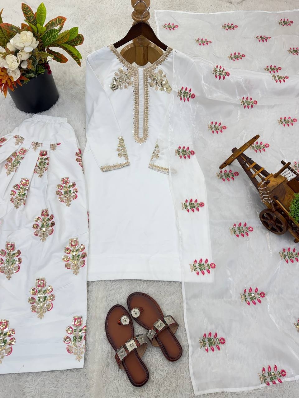 Presenting New White Crepe Silk Salwar Kameez With Dupatta For Women Girls