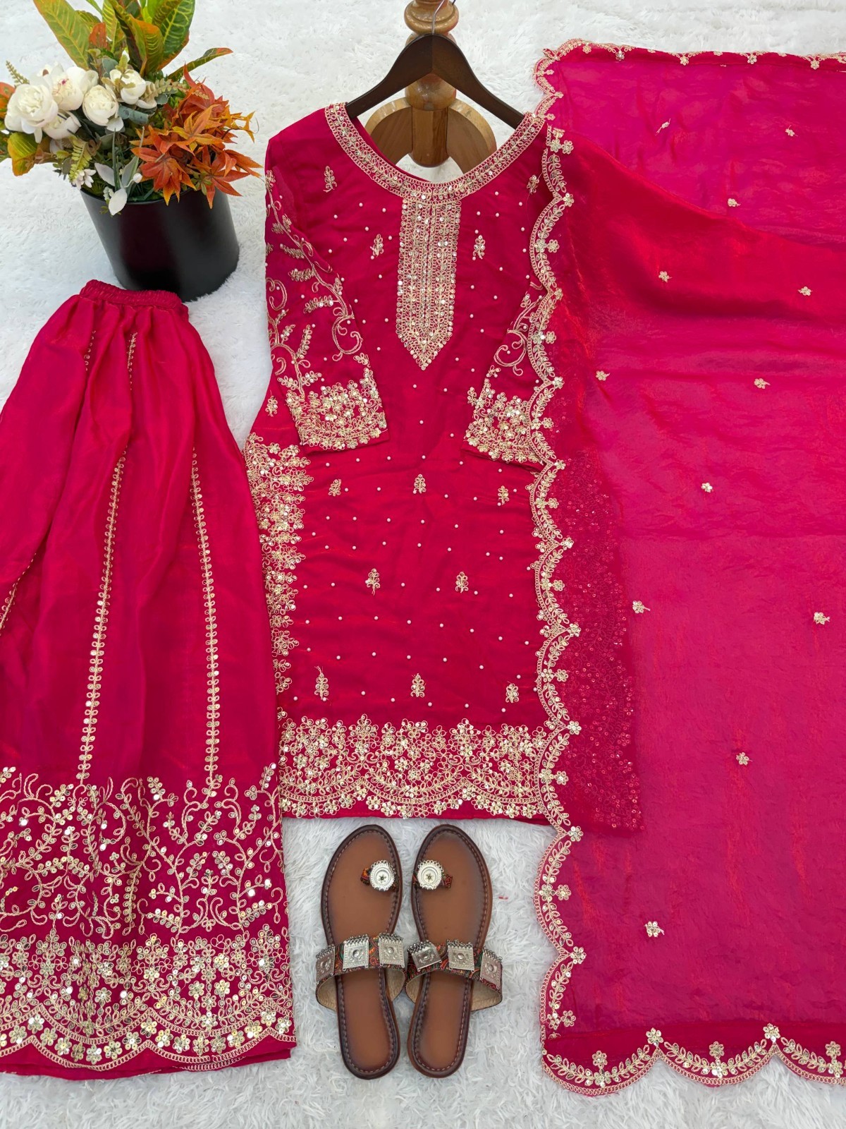 как выглядит Presenting New Silk Pink Top Palazzo With Dupatta For Festival Wear фото