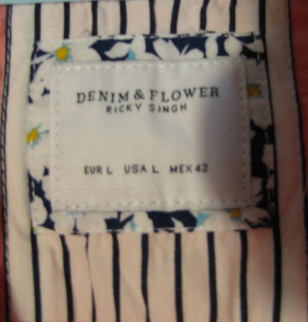 Denim Flower Ricky Singh L Pink White Birds Button Down Shirt NEW NWT
