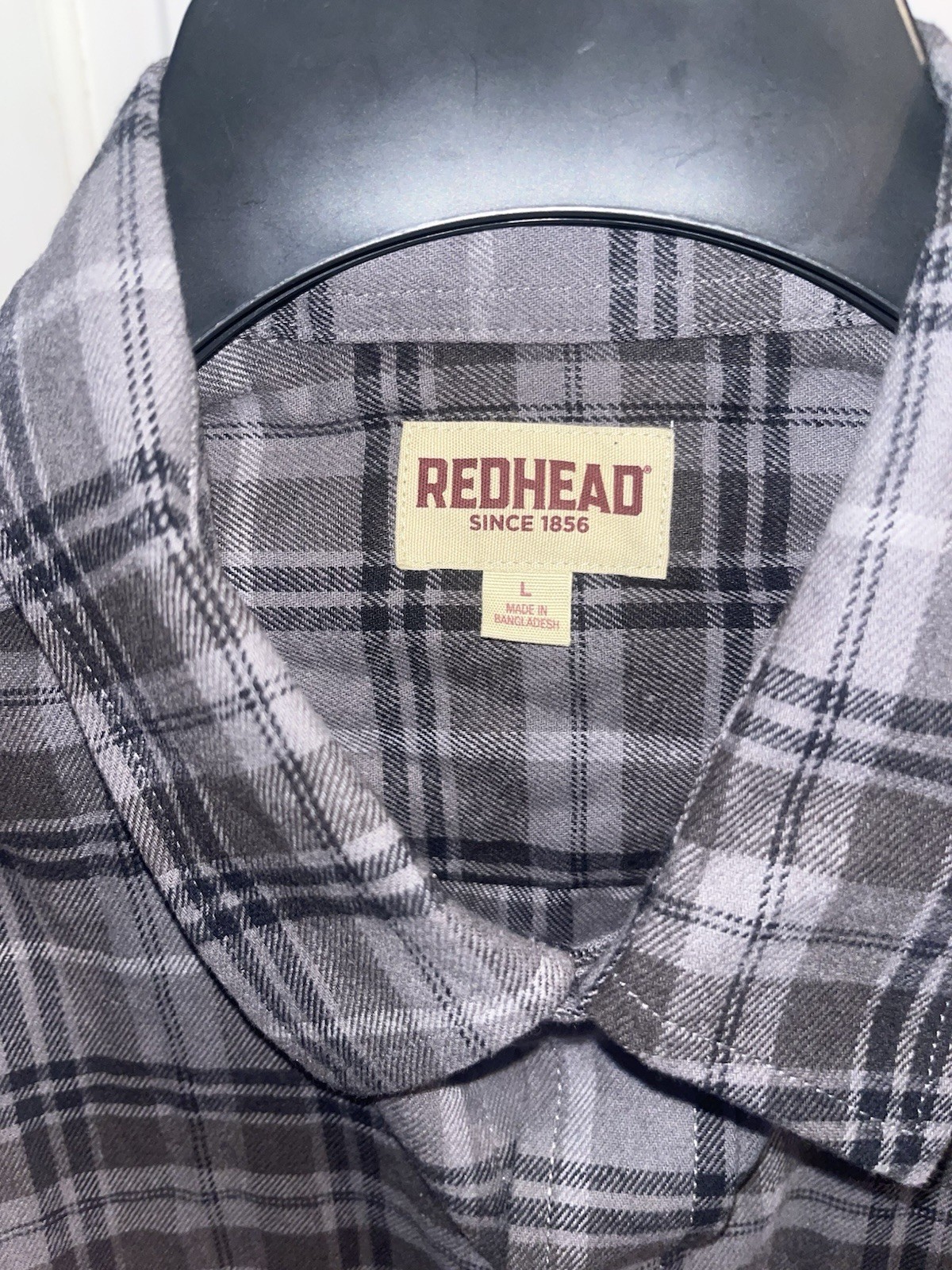 NWT Redhead Men s Gray Plaid Long Sleeve Button Up Shirt. Size Large.