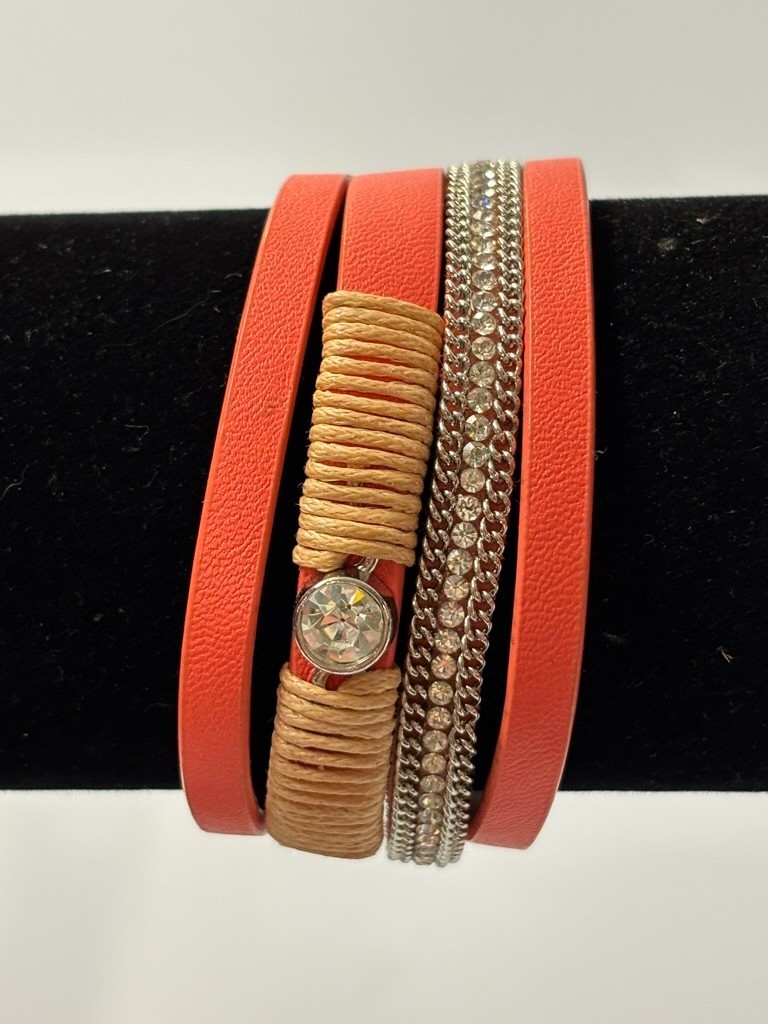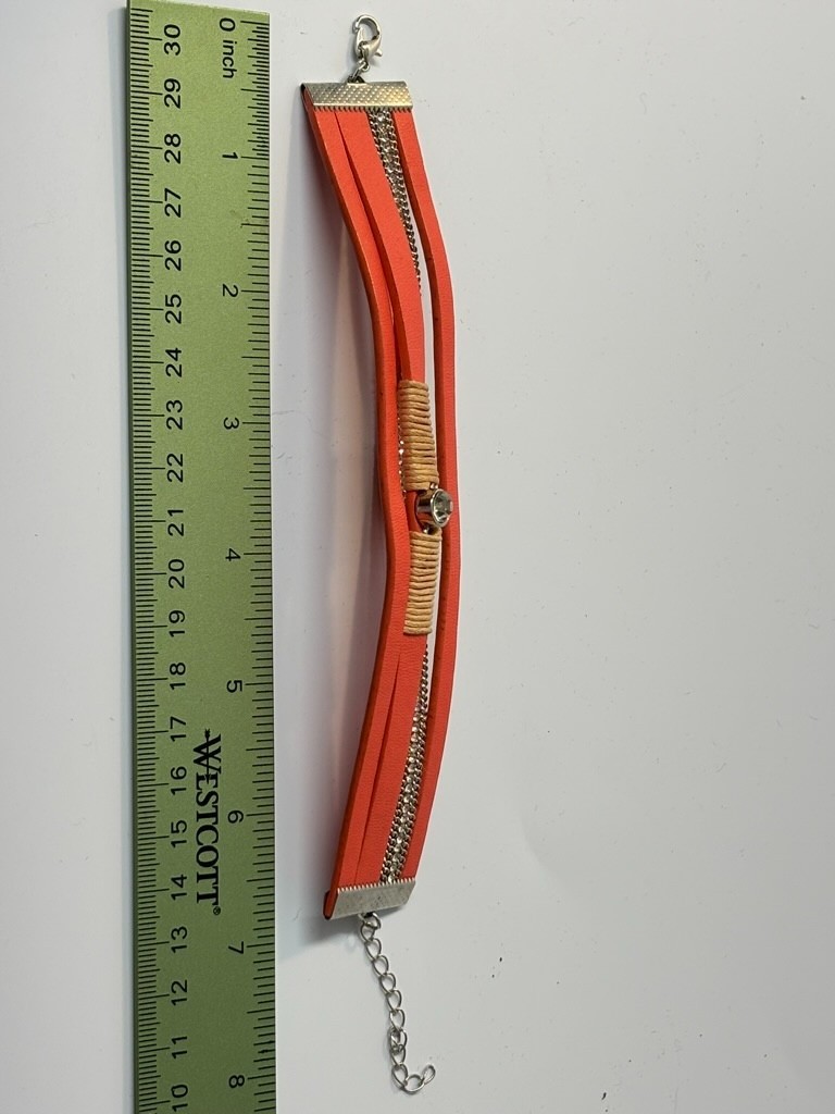 Cuff Bracelet Orange Faux Leather Sparkles Very Boho Princess Vibes