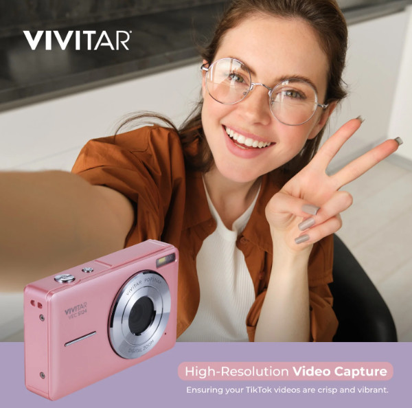 Vivitar Popsnap Compact Digital Camera, Pink, 16X Zoom 1080p, Built-in Flash