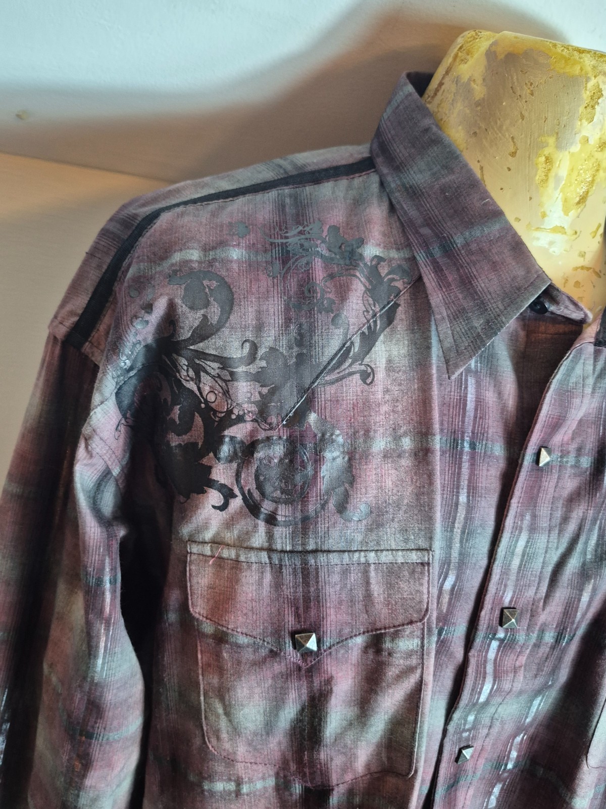 как выглядит Panhandle Slim 90 Proof Mens Snap-Button Western Shirt Purple Gray Plaid NEW NWT фото