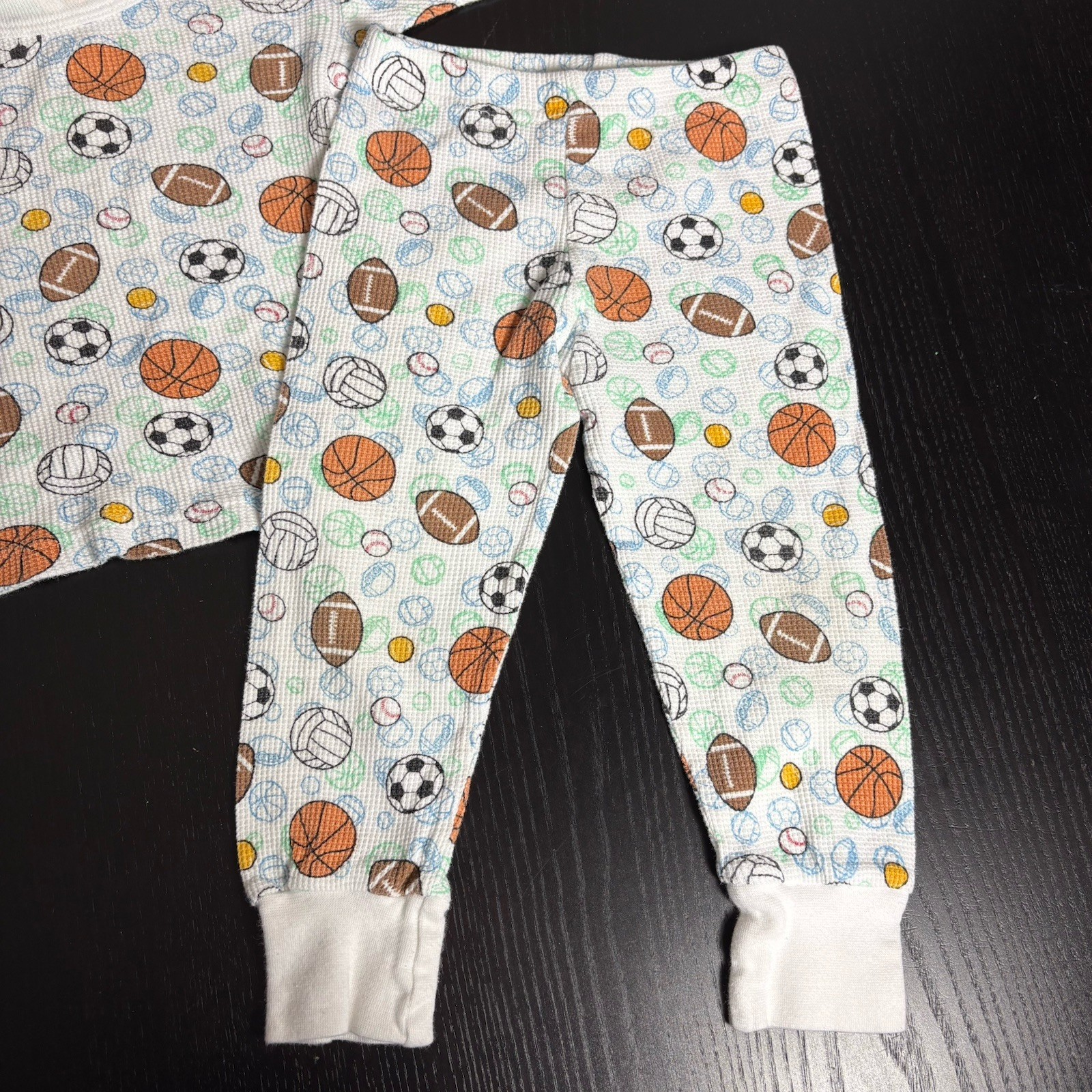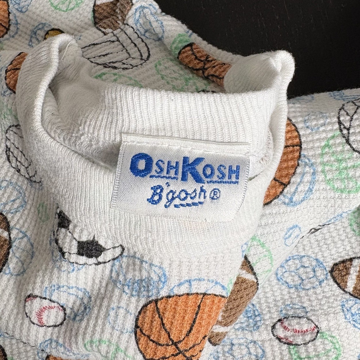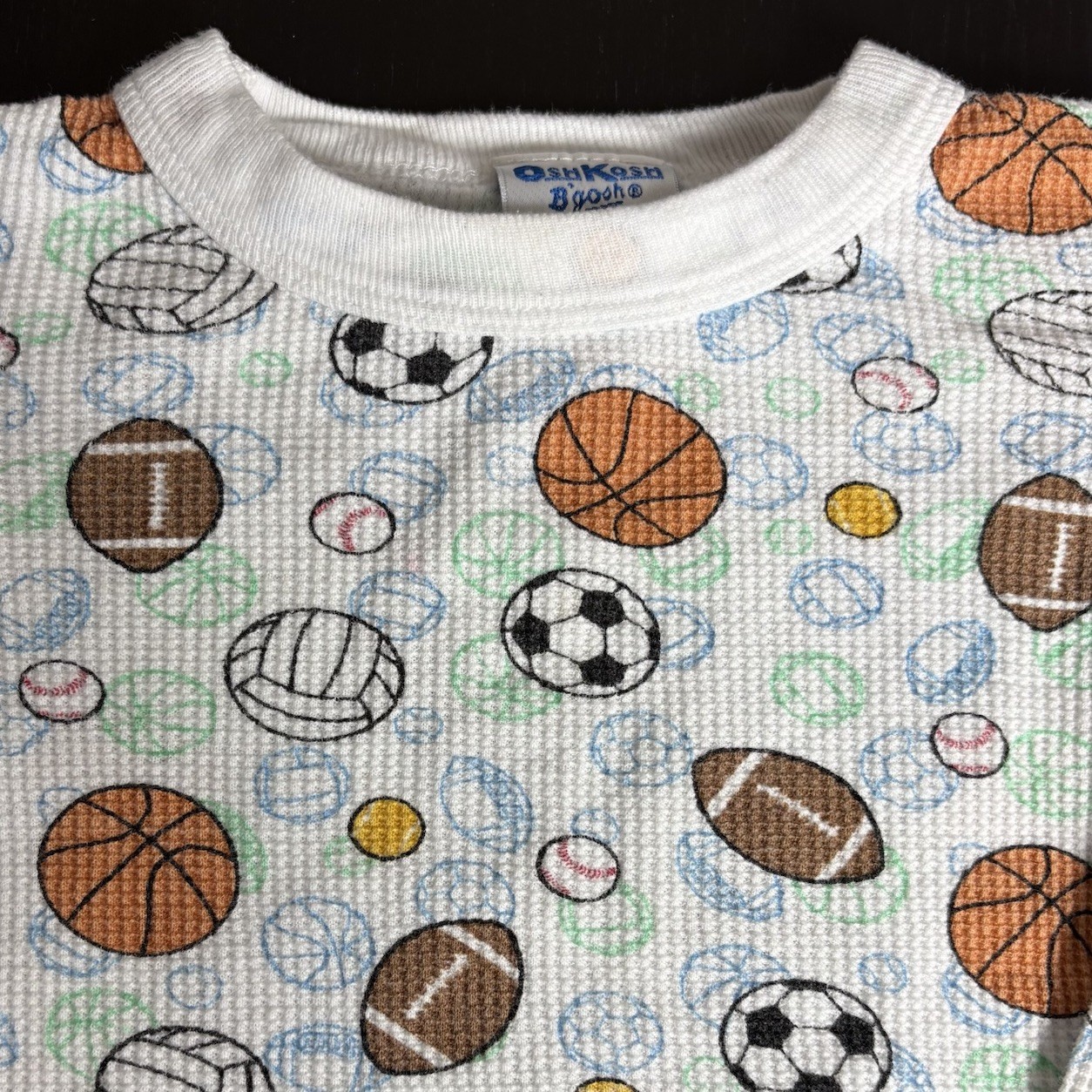 Vintage 90s/Y2K OSHKOSH Boys Size 24M Sports Print Waffle Knit 2pc Pajamas Set