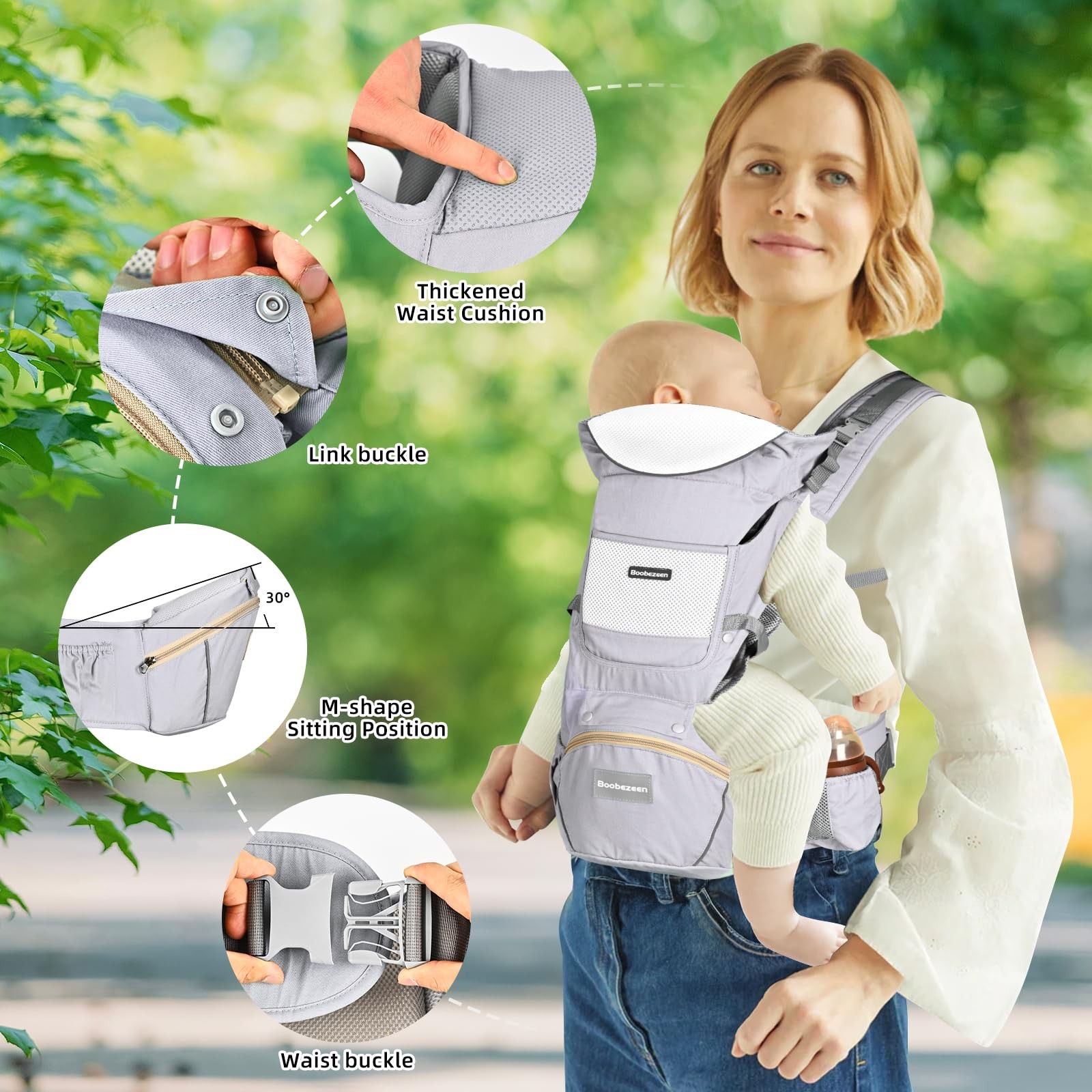 Baby Carrier with Hip Seat, Ergonomic M Position 6-in-1 Baby Carrier Newborns...