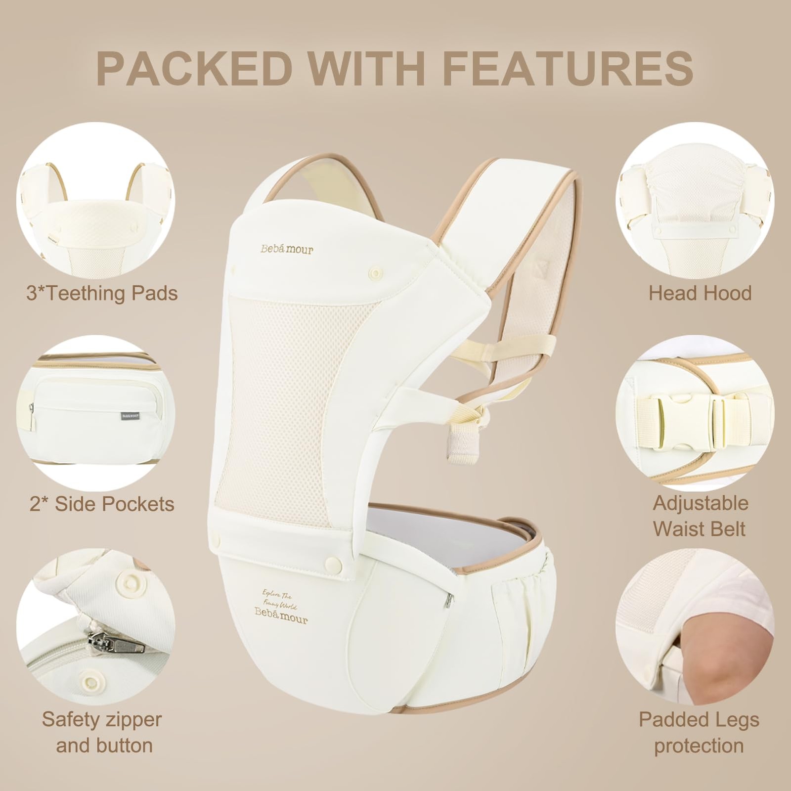 как выглядит Baby Carrier with Hip Seat,All-Position Breathable Mesh Hip Seat Carrier 0-... фото
