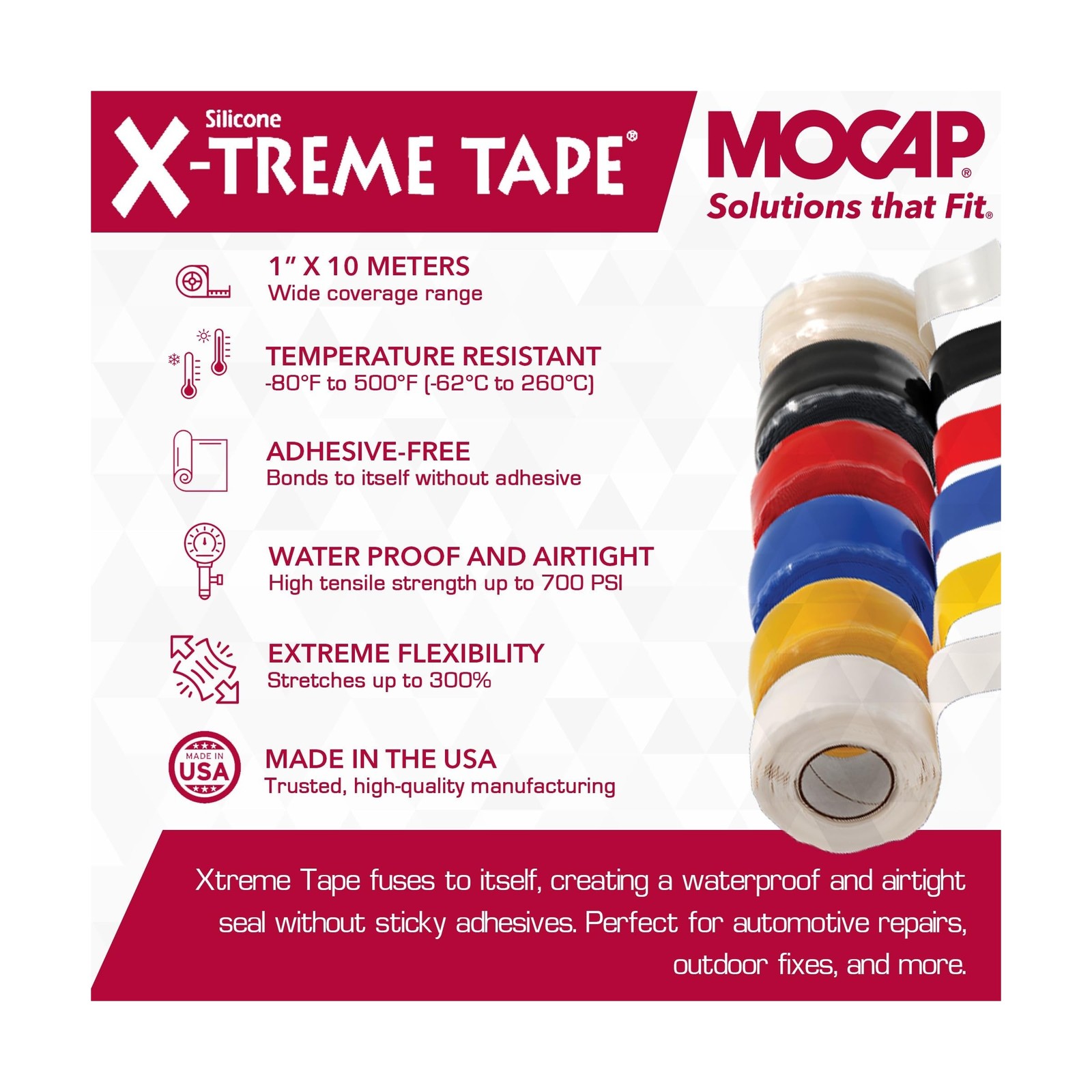 X-Treme Tape MOCAP Heavy Duty Electrical Tape, Self-Fusing Silicone Rubber, W...