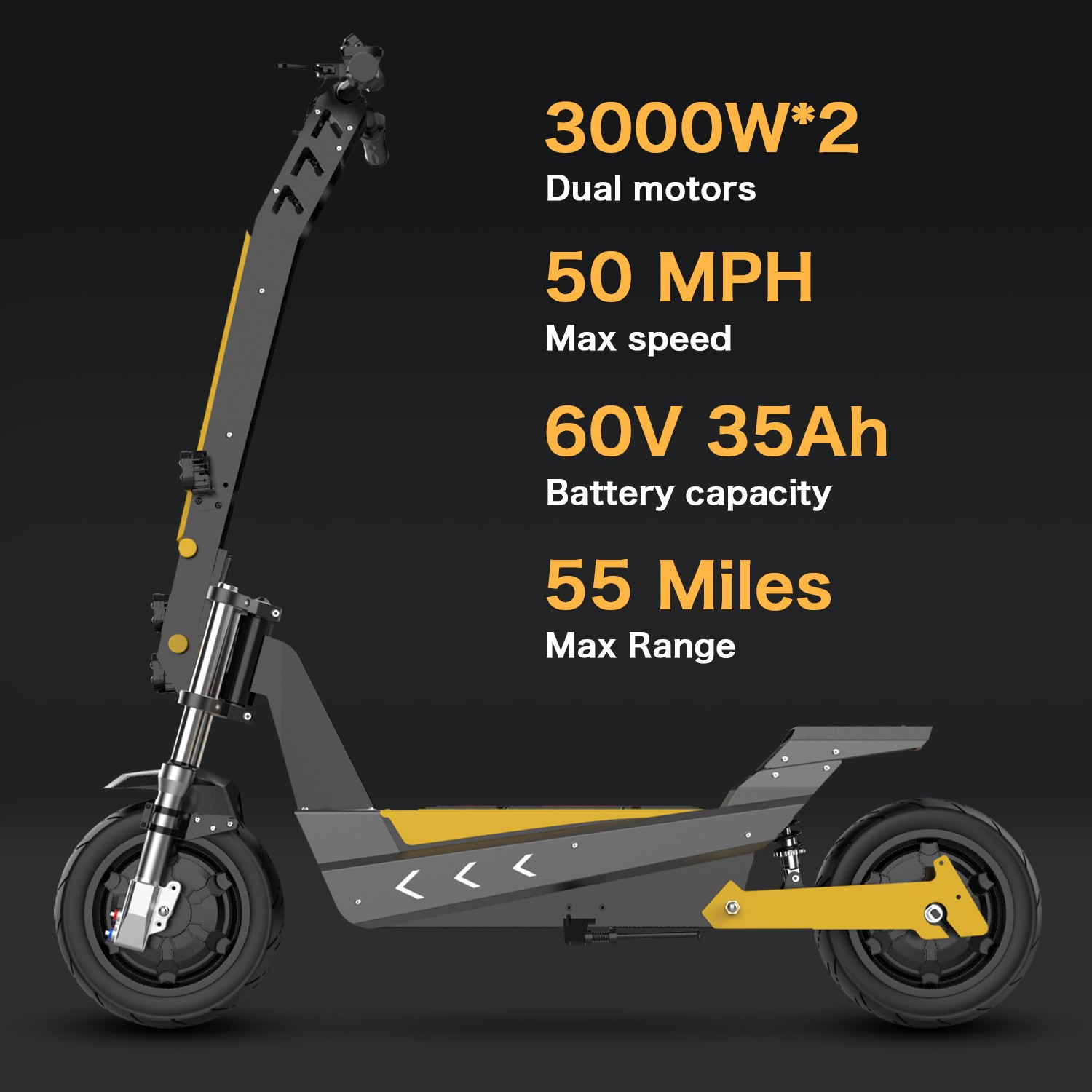Electric Scooter 6000W Dual Motors 60V 35Ah 50MPH Long Range Foldable E-Scooter