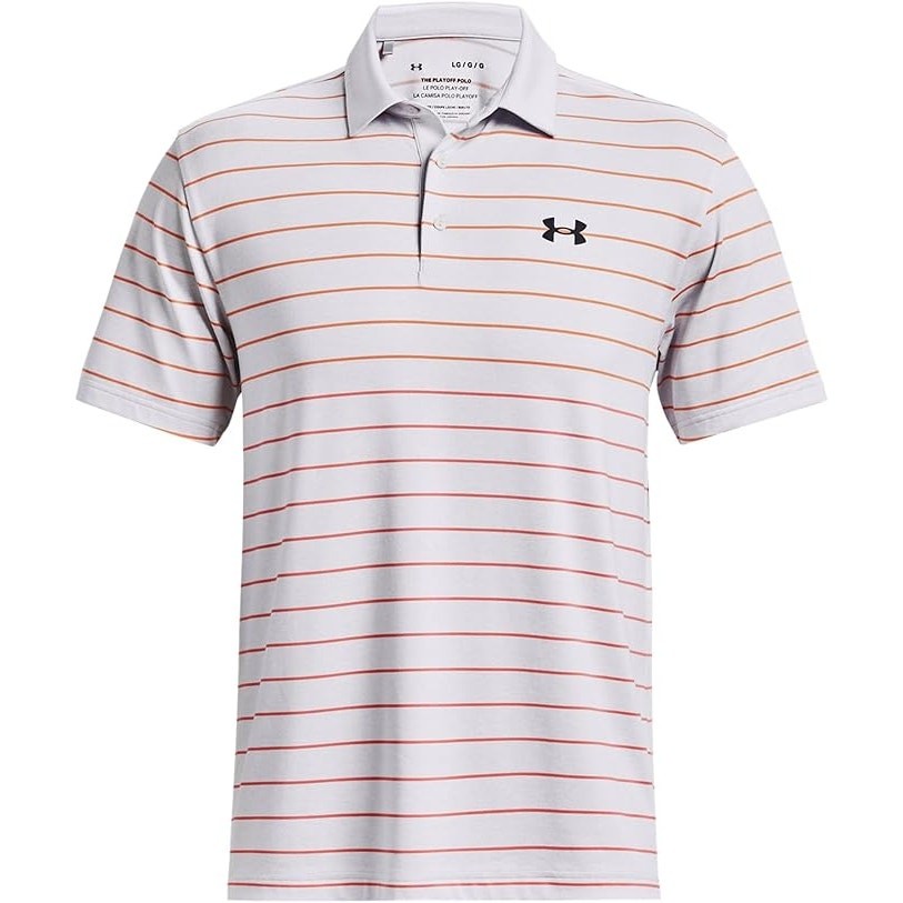 NWT Under Armour Mens Playoff 3.0 Stripe Golf Polo,halo gray/orange blast-Sz M