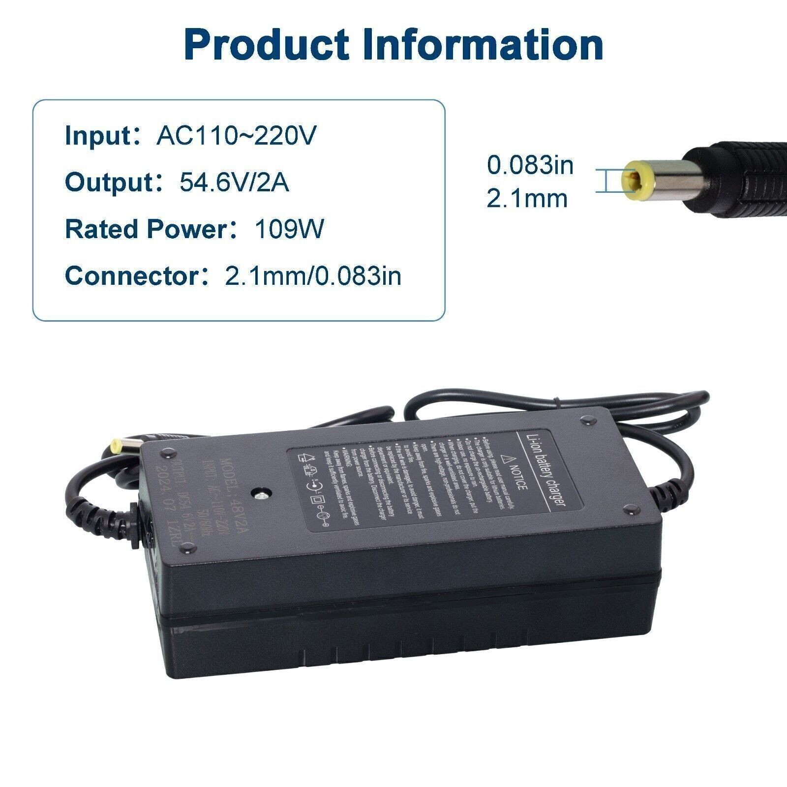 54.6V 2A Fast Charge Charger For 48V Lithium Battery Batterie DC 5.5x2.1mm Plug