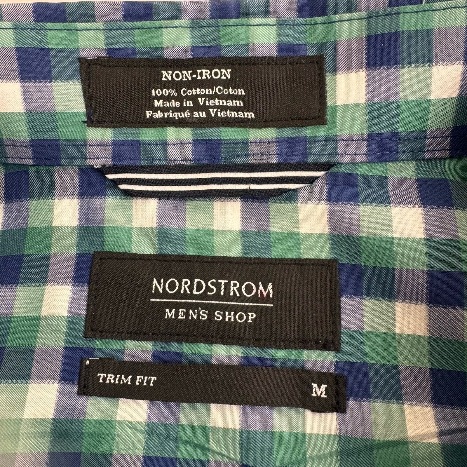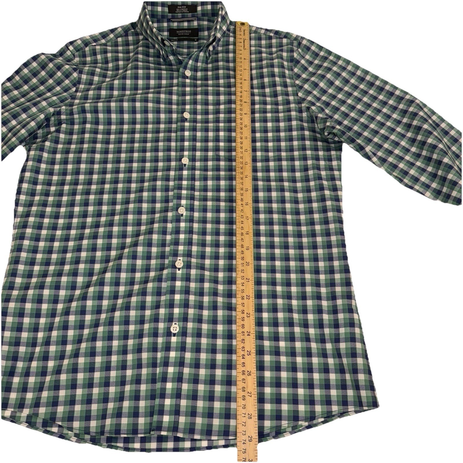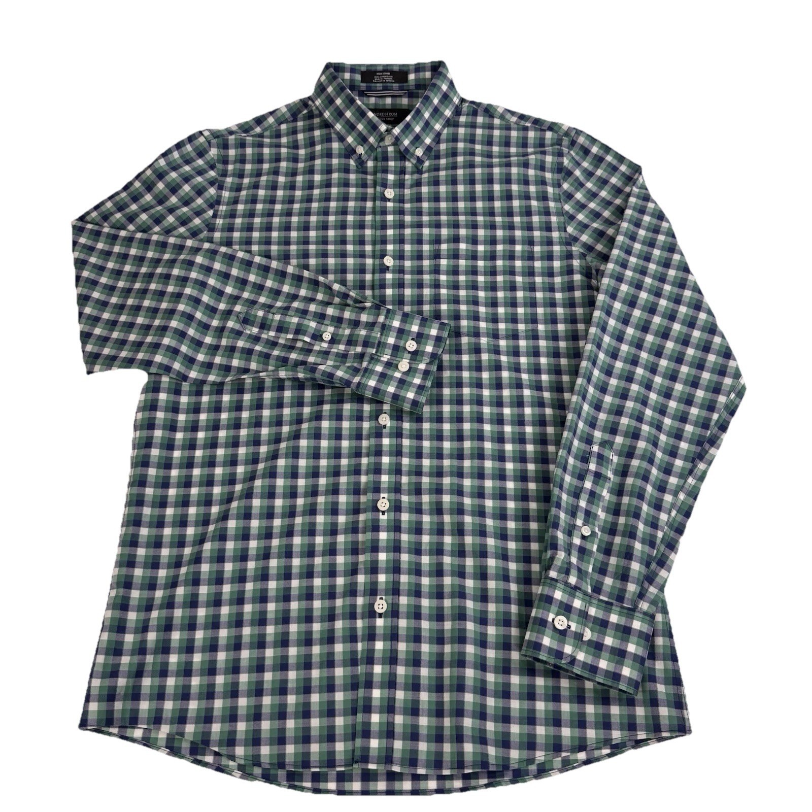 как выглядит Nordstrom Button Down Shirt Men M Green Gingham Trim Fit Non-Iron Cotton фото