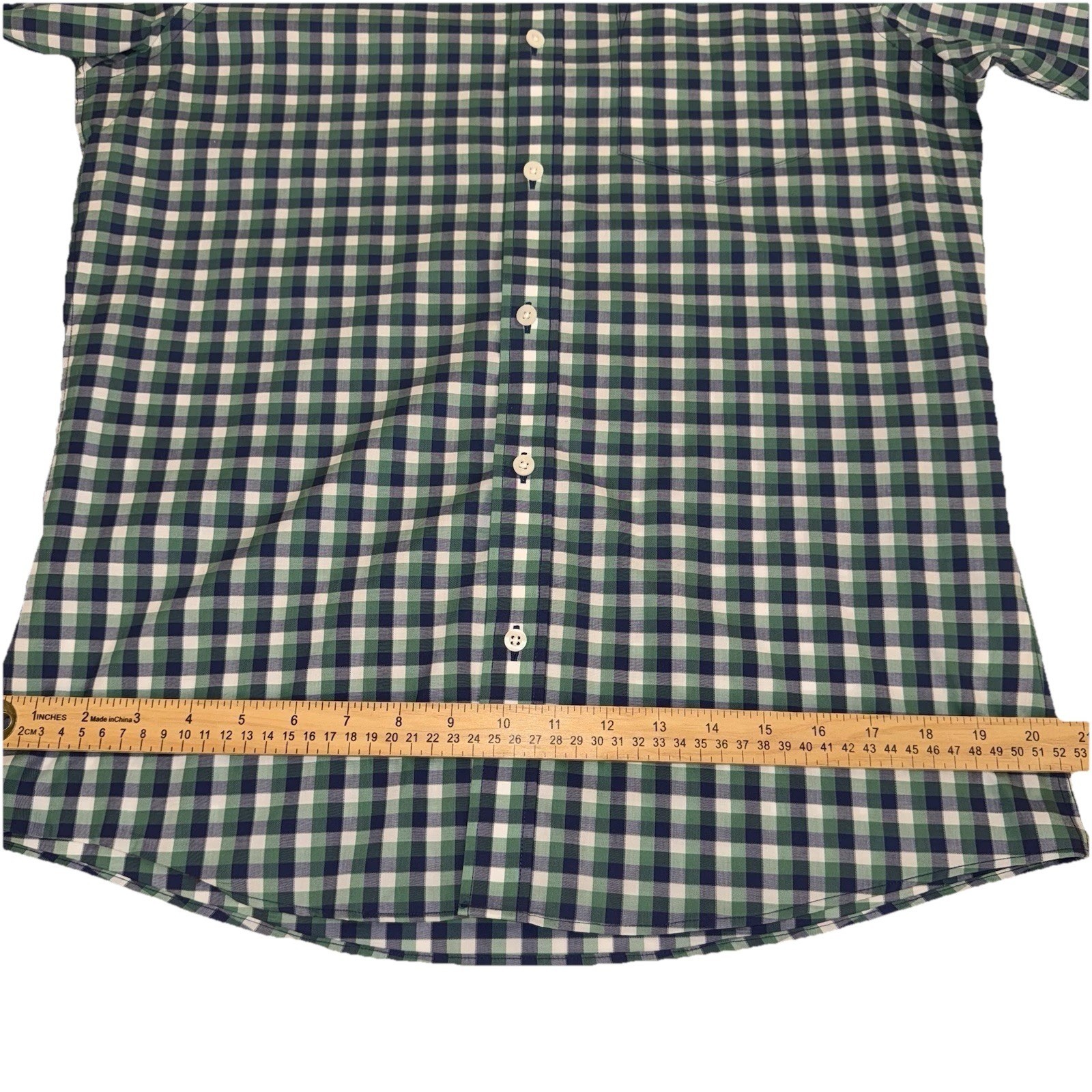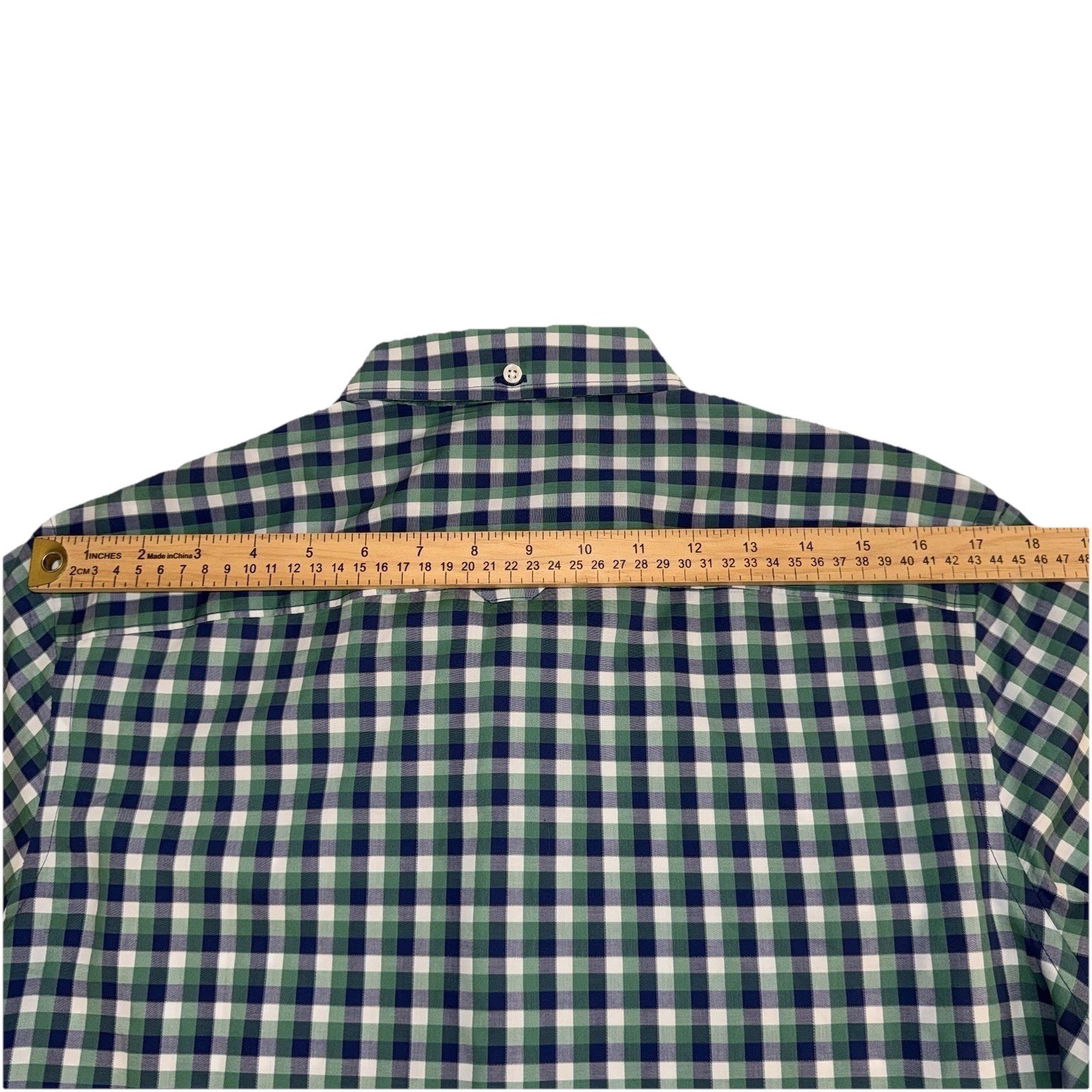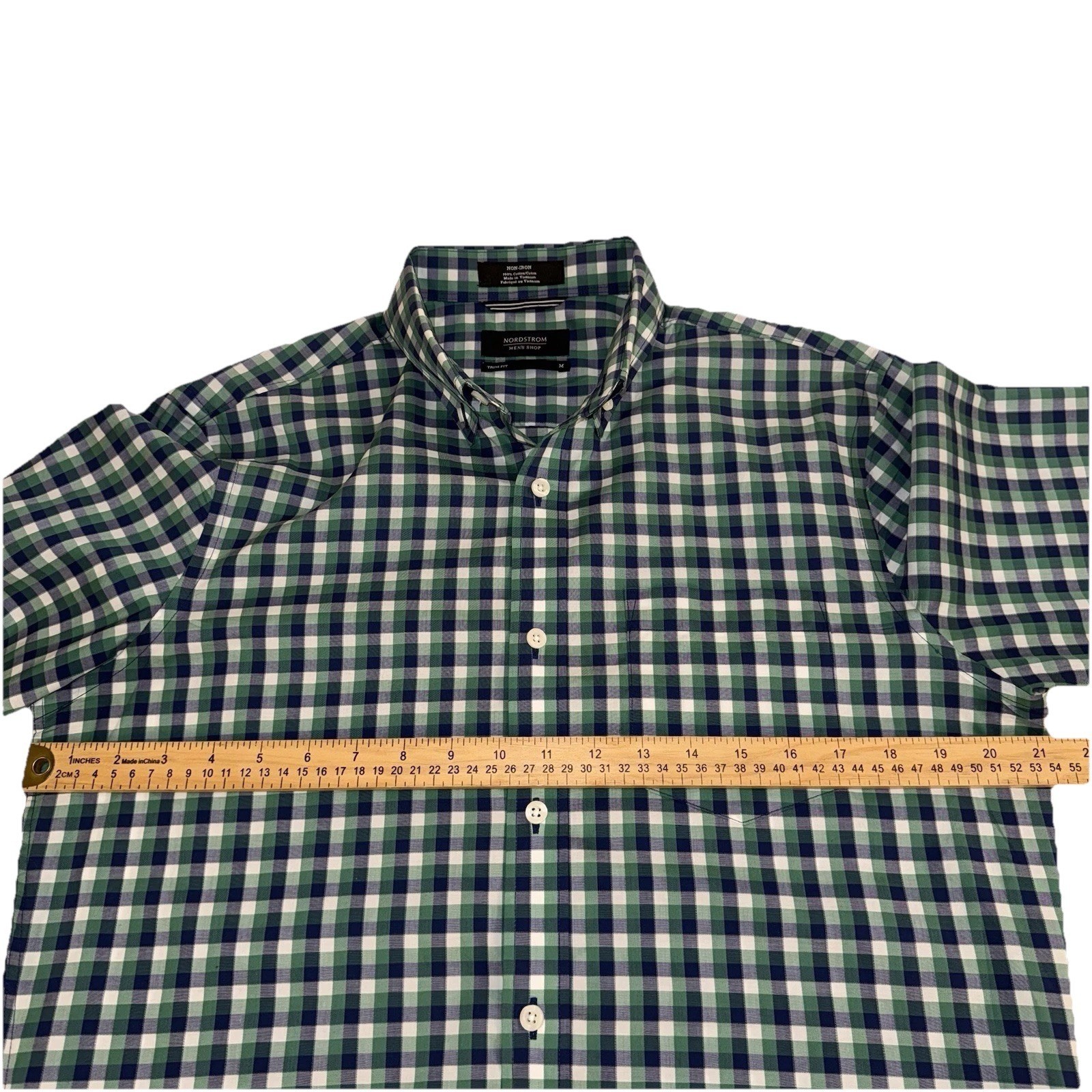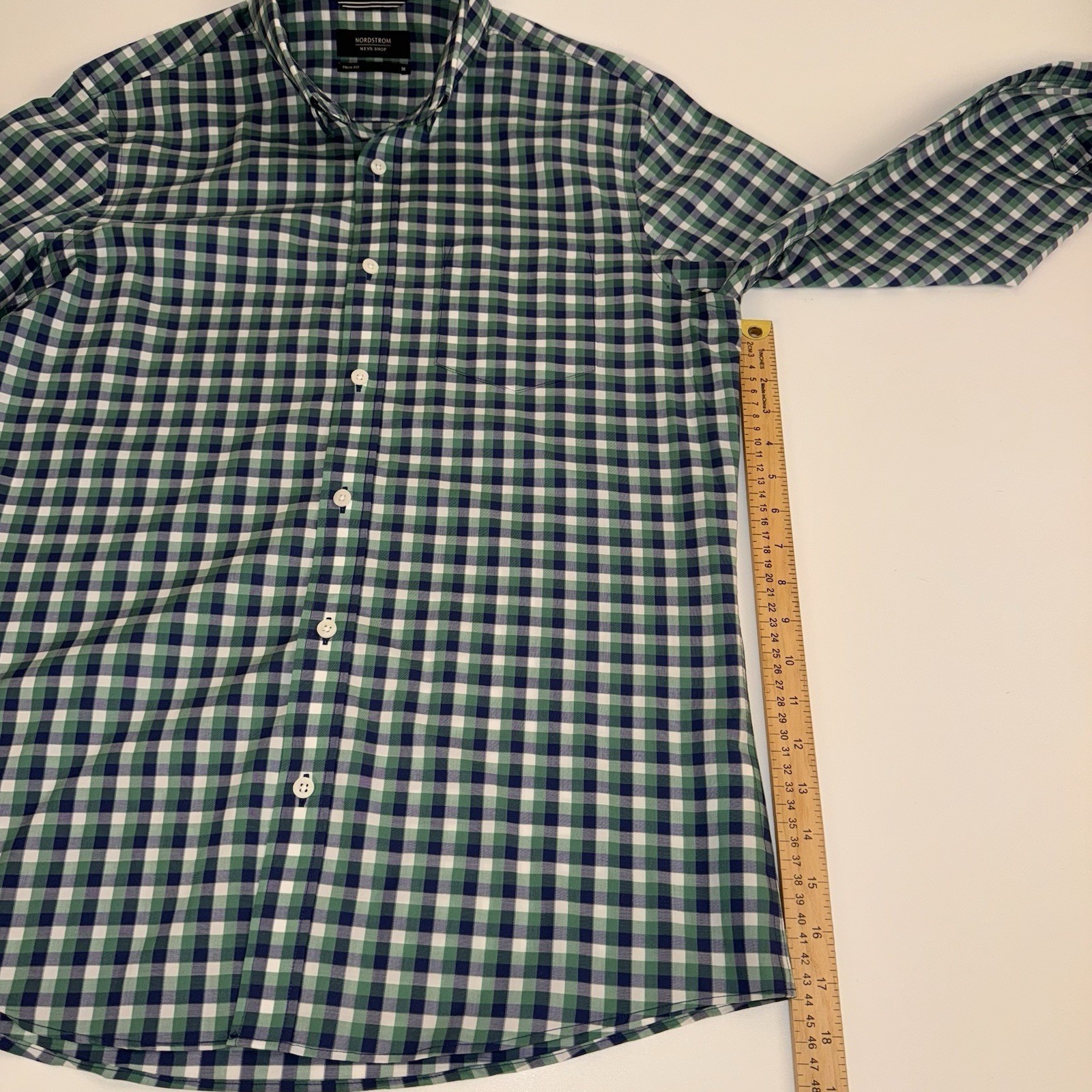 как выглядит Nordstrom Button Down Shirt Men M Green Gingham Trim Fit Non-Iron Cotton фото