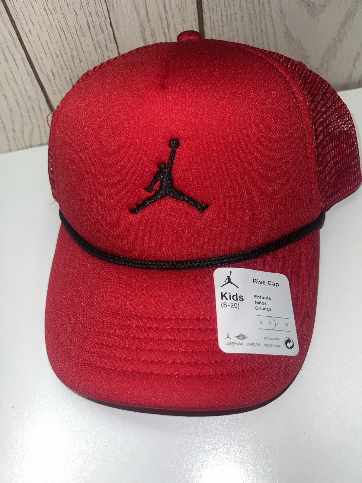 Jordan Jumpman Hat Kids Youth Logo Rope Accent Red Mesh Back Foam Trucker Cap