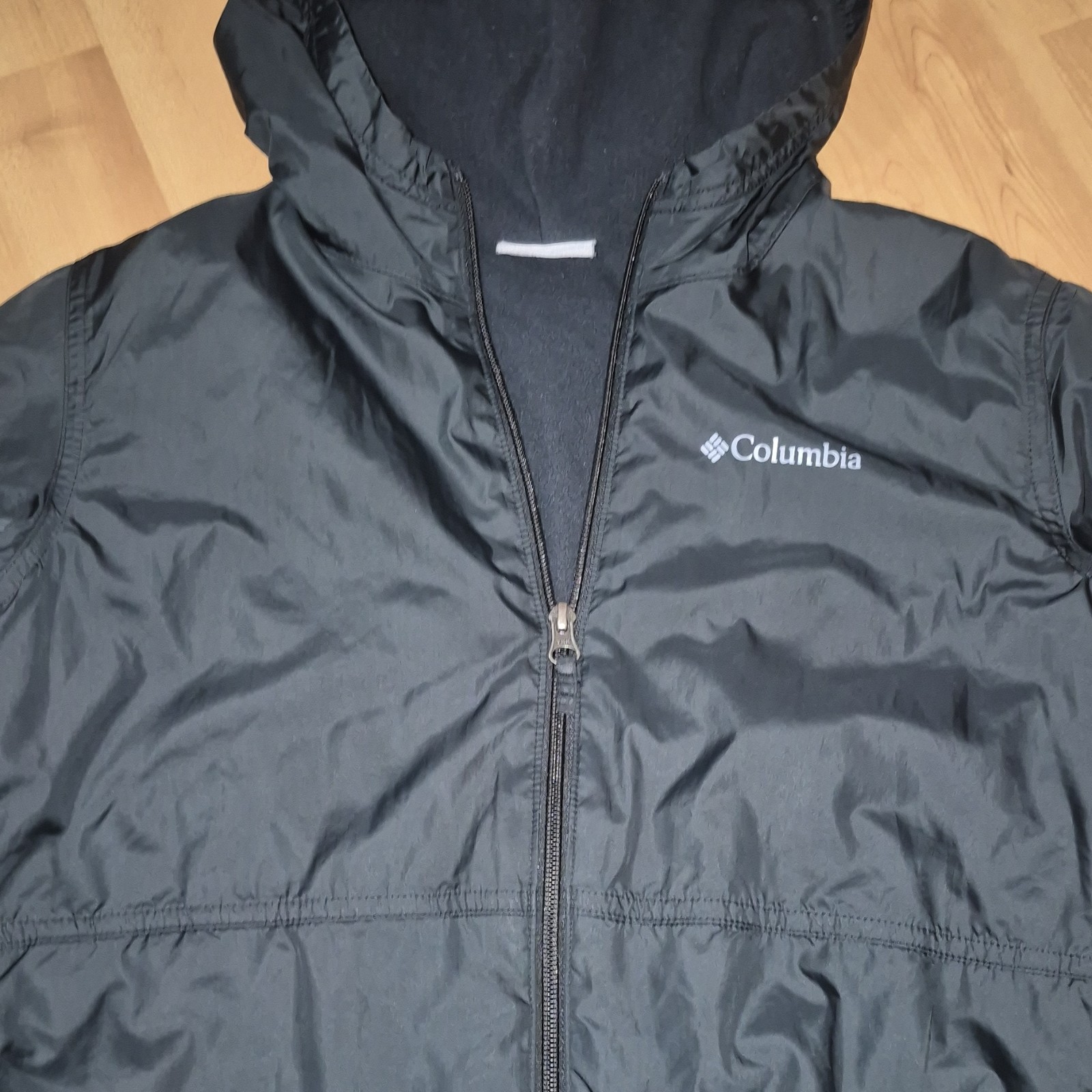как выглядит Columbia Boys Hooded Full Zip Lined windbreaker Jacket Black Size L 14/16 фото