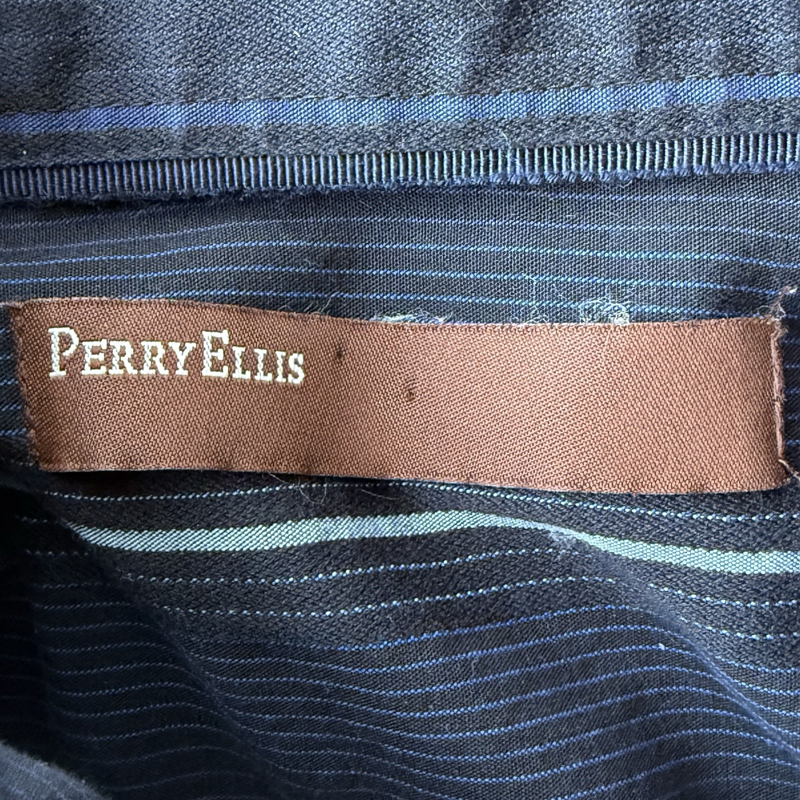 Perry Ellis Mens Shirt Sz M Cotton Button Down Dress Blue Striped H-1