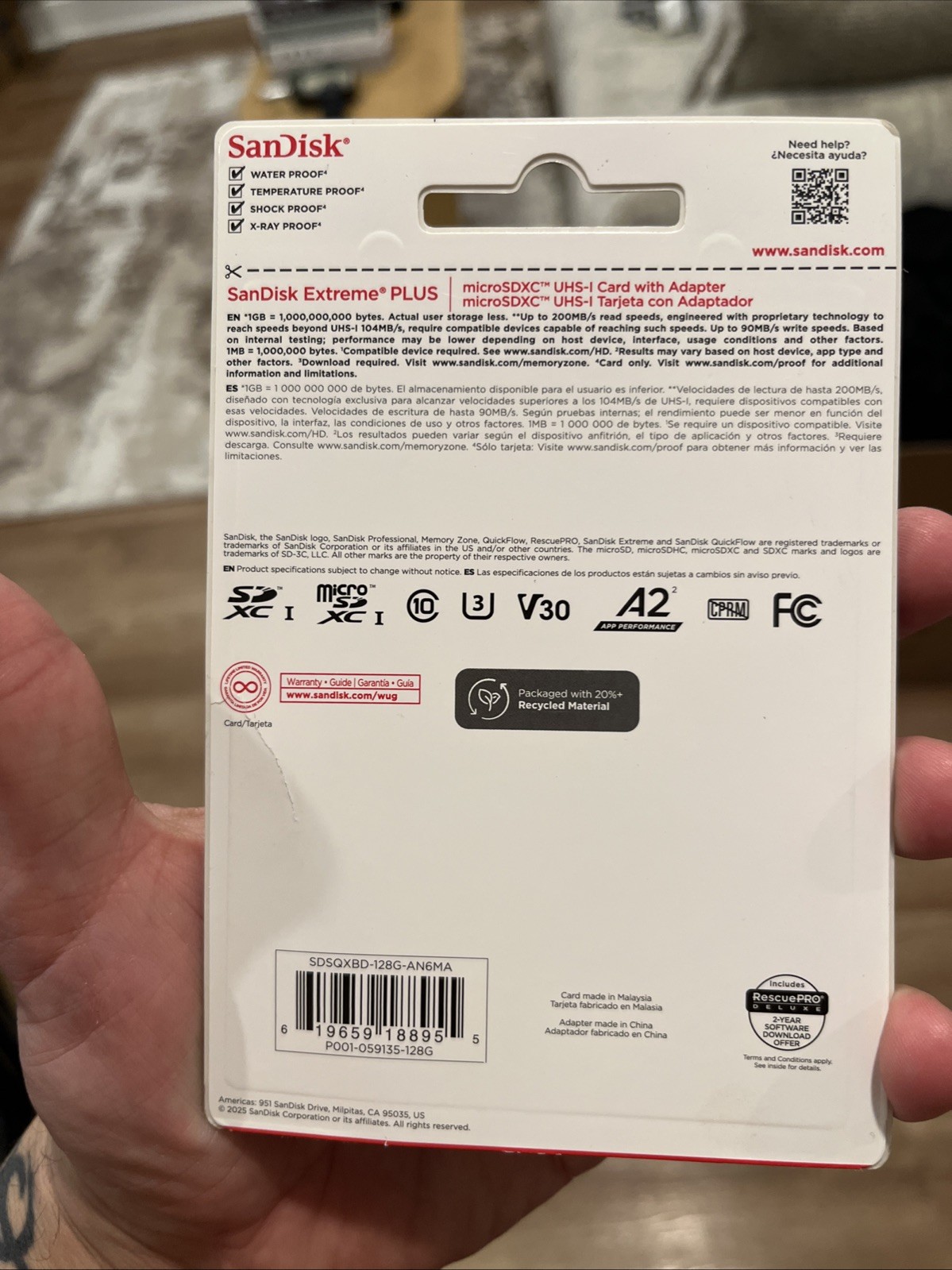 как выглядит SanDisk - Extreme PLUS 128GB MicroSDXC UHS-I Memory Card Brand New Sealed фото