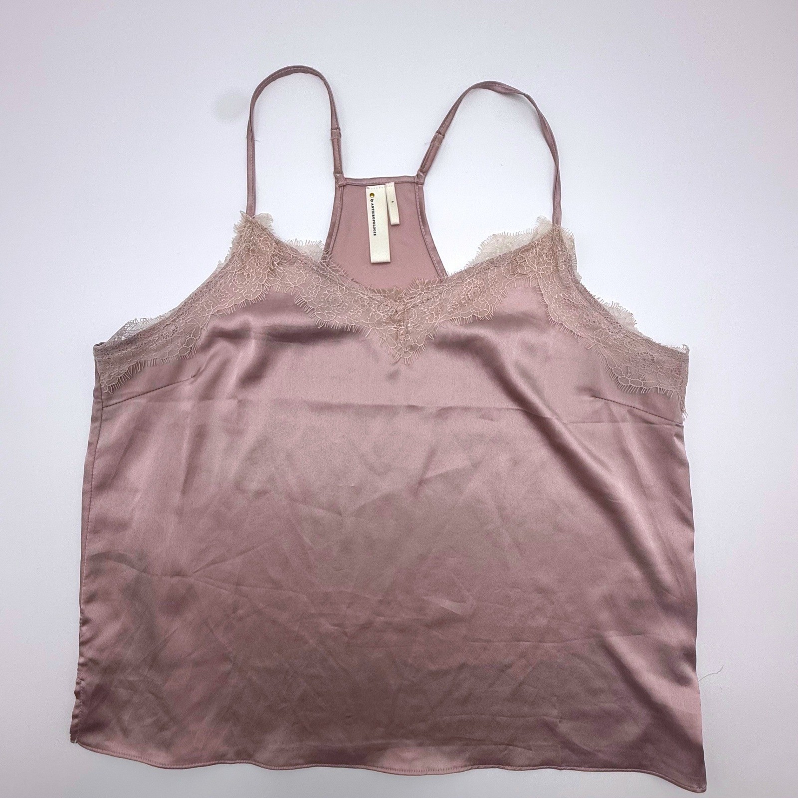 Anthropologie Mauve Pink Satin Lace Trim Racerback Camisole Top Size L