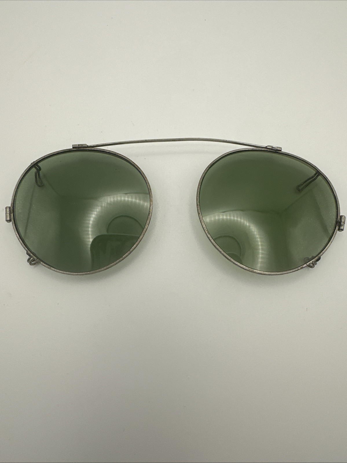 как выглядит MO Filt-Ray Over Specs Clip On Sunglasses Silver Green Lens with Case Vintage фото