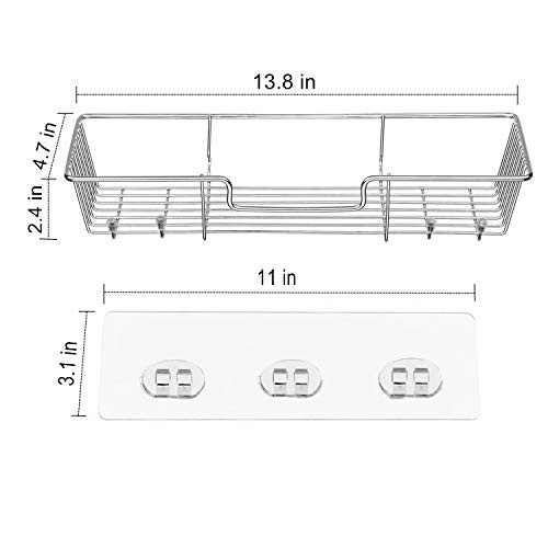 Adhesive Shower Caddy Bathroom Shelf Storage with Hooks for Shampoo 1 Tier