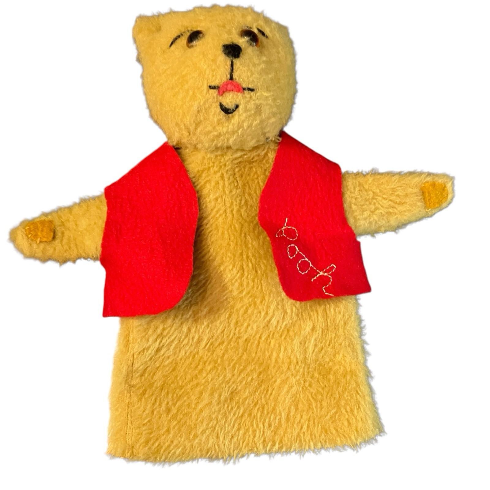 • Vintage 1960s Winnie the Pooh Hand Puppet Disney Plush 9" Red Vest Gund-Era